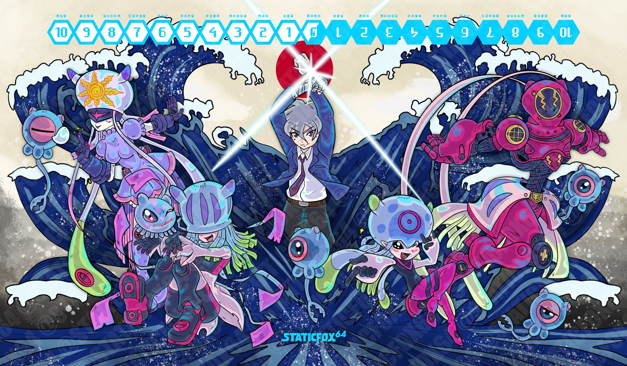 amphimon android armor blue_eyes digimon digimon_ghost_game diving_suit evolutionary_line full_armor gynoid higashimitarai_kiyoshiro highres jellyfish jellyfish_girl jellymon looking_at_viewer mask mecha_girl monster_girl puyomon puyoyomon robot_girl short_hair tentacle_hair tentacles teslajellymon thetismon white_hair