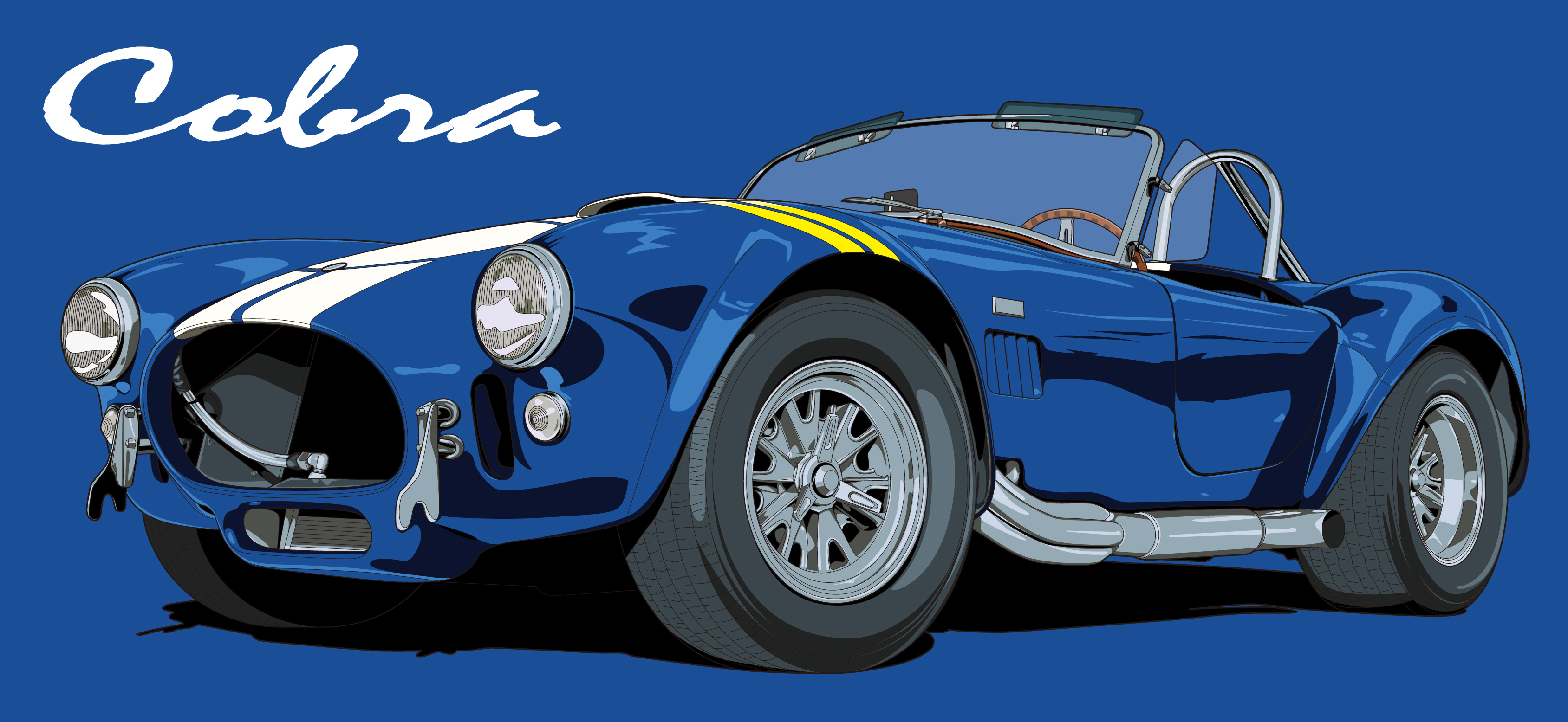 absurdres blue_background blue_car car commentary_request convertible exhaust_pipe gnu_(cowboy662) highres motor_vehicle no_humans original shelby_cobra steering_wheel vehicle_focus