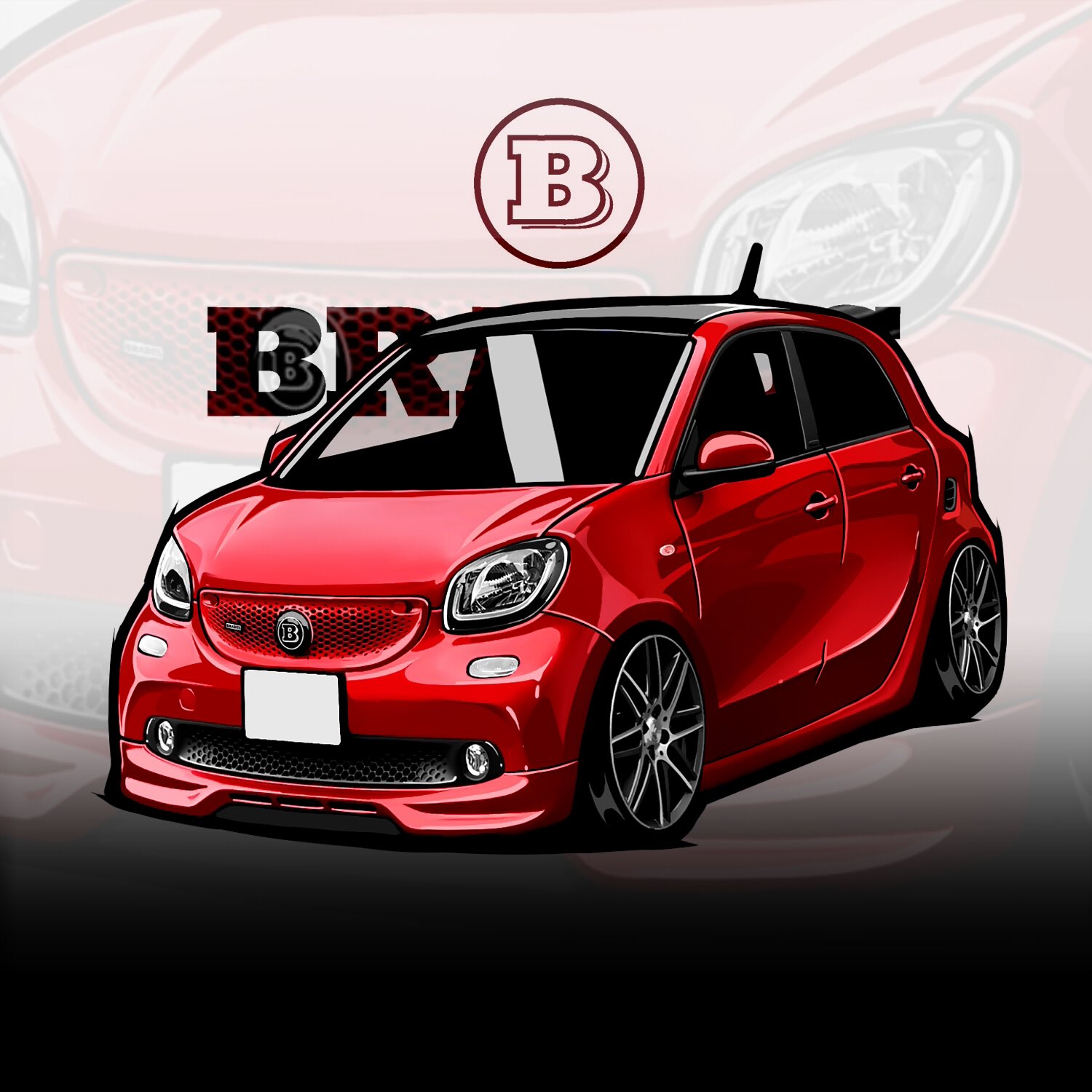 brabus car chris_ilst commission highres logo motor_vehicle no_humans original red_car smart_(company) smart_forfour vehicle_focus zoom_layer