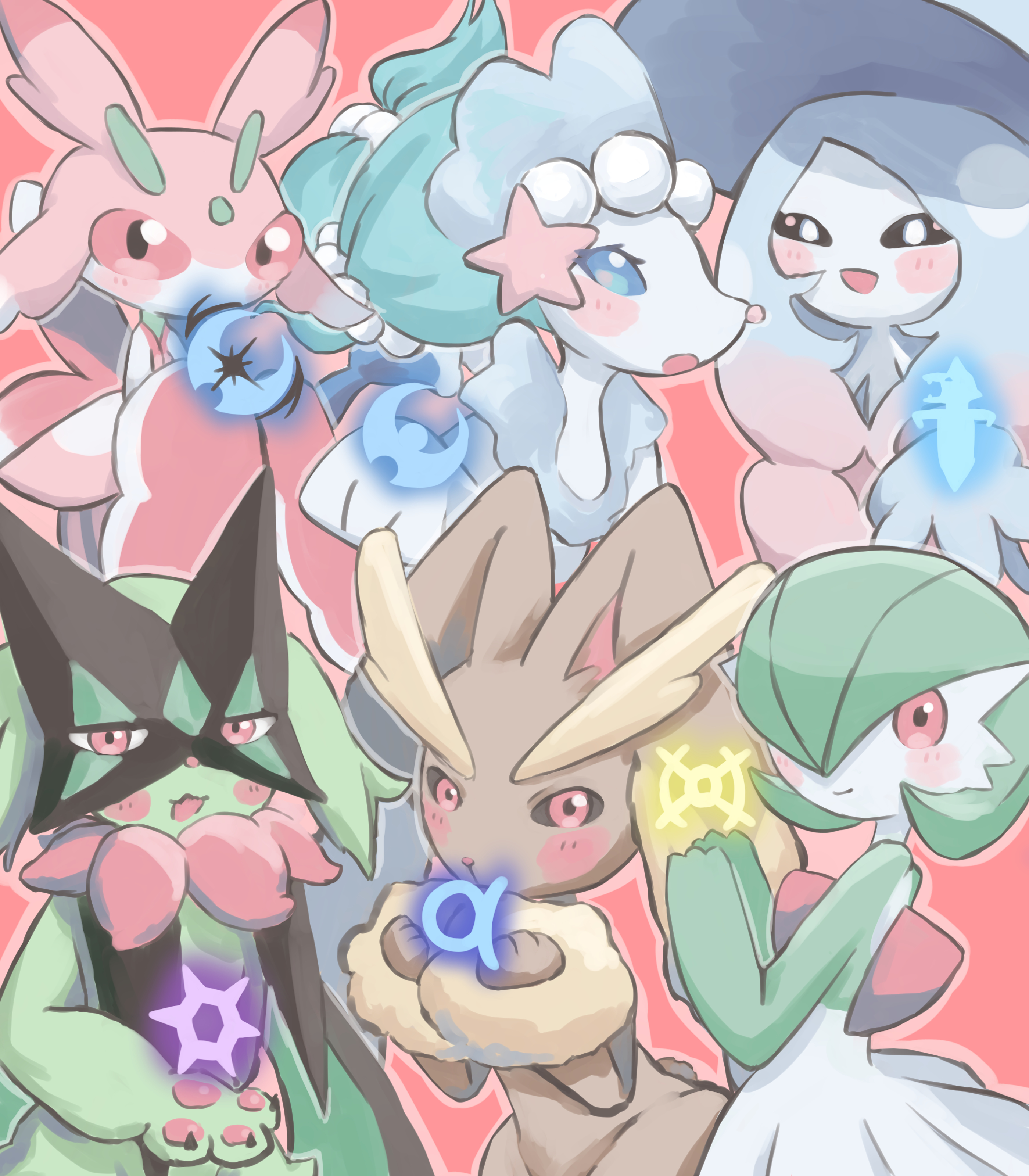 6+girls :3 absurdres animal_hands animal_nose antennae arthropod_girl black_eyes black_sclera blank_eyes blue_eyes blue_hair blue_headwear blush blush_stickers bob_cut body_fur brown_fur cat_girl claws closed_mouth colored_sclera colored_skin female_focus flat_chest from_side furry furry_female gardevoir gen_3_pokemon gen_4_pokemon gen_7_pokemon gen_8_pokemon green_fur green_hair green_skin hair_ornament hair_over_one_eye half-closed_eyes hand_up hands_up happy hat hatterene highres long_hair looking_at_viewer lopunny lurantis mame_(nanase_pk) meowscarada multi-tied_hair multicolored_hair multicolored_skin multiple_girls nintendo one_eye_covered open_mouth outline own_hands_together pawpads pearl_hair_ornament pink_hair pink_outline pink_skin pokemon pokemon_(creature) pokemon_legends:_arceus pokemon_omega_ruby_and_alpha_sapphire pokemon_sun_and_moon pokemon_scarlet_and_violet pokemon_sword_and_shield pokemon_ultra_sun_and_ultra_moon primarina rabbit_ears rabbit_girl rabbit_tail red_background red_eyes red_sclera short_hair sidelocks simple_background smile snout standing starfish_hair_ornament two-tone_fur two-tone_hair two-tone_skin upper_body white_eyes white_skin yellow_fur