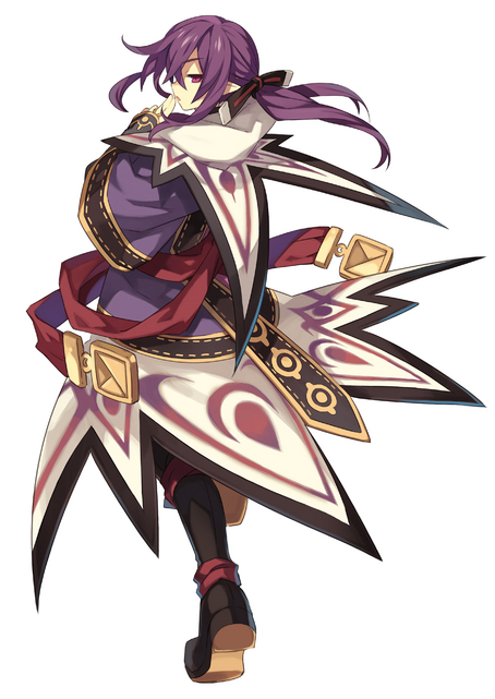 1boy boots full_body japanese_clothes male_focus official_art pointy_ears ponytail purple_eyes purple_hair solo suzaku_(trinity_universe) transparent_background trinity_universe tsunako