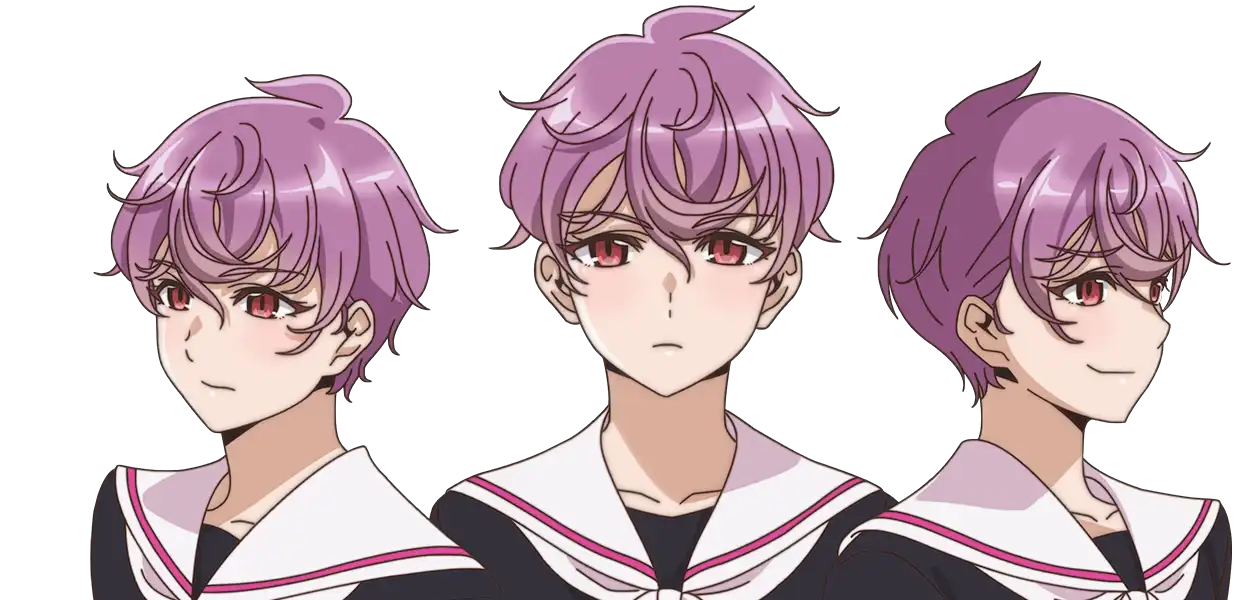1girl closed_mouth edomae_elf kohinata_himawari_(edomae_elf) looking_at_viewer official_art purple_hair red_eyes school_uniform short_hair transparent_background