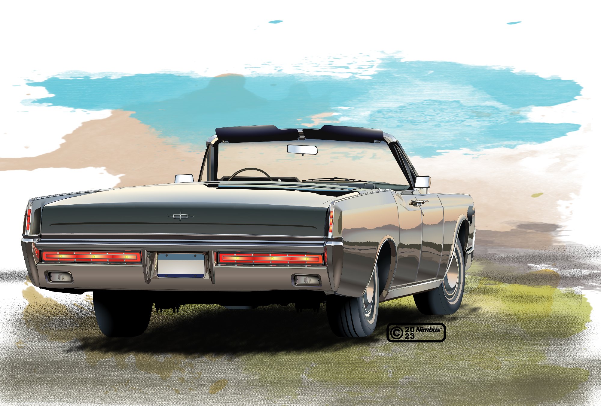 blue_sky car convertible ford highres license_plate lincoln_(company) lincoln_continental motor_vehicle nimbus_goldbrum no_humans original outdoors sky vehicle_focus