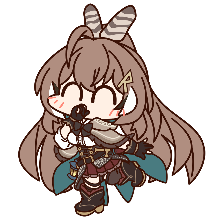 1girl ^_^ ahoge aka_shiba belt black_boots black_gloves boots brown_capelet brown_cloak brown_corset brown_hair capelet chibi cloak closed_eyes corset covering_own_mouth feather_hair_ornament feathers flat_color full_body gloves hair_ornament hand_over_own_mouth high_ponytail hololive hololive_english lantern long_hair multicolored_hair nanashi_mumei nanashi_mumei_(1st_costume) official_art partially_fingerless_gloves pleated_skirt ponytail red_skirt rune_hair_ornament shirt skirt solo streaked_hair transparent_background virtual_youtuber white_shirt