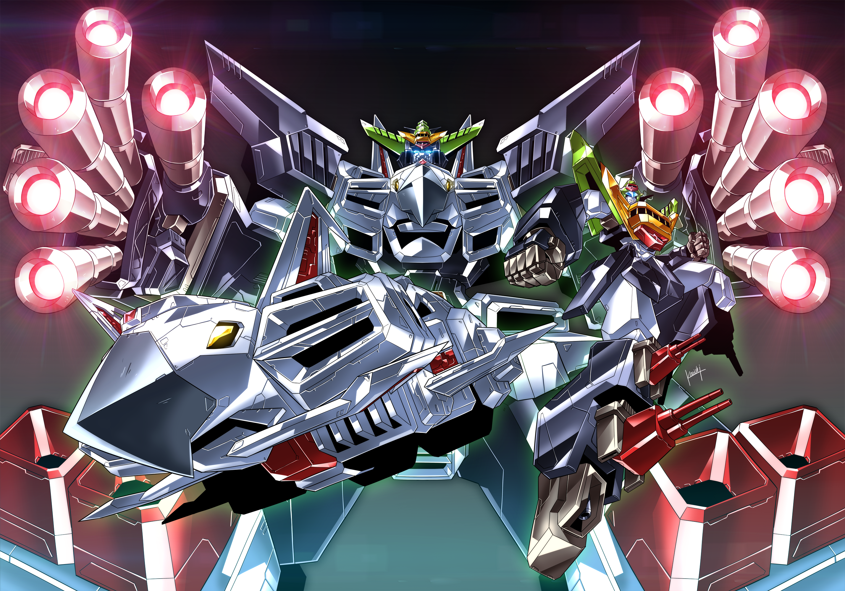 arm_cannon battleship cannon dual_arm_cannons energy_cannon gaogaigar highres king_j-der kouichi_(kouichi-129) looking_at_viewer mecha military military_vehicle robot ship ship_turret standing warship watercraft weapon yuusha_ou_gaogaigar yuusha_series