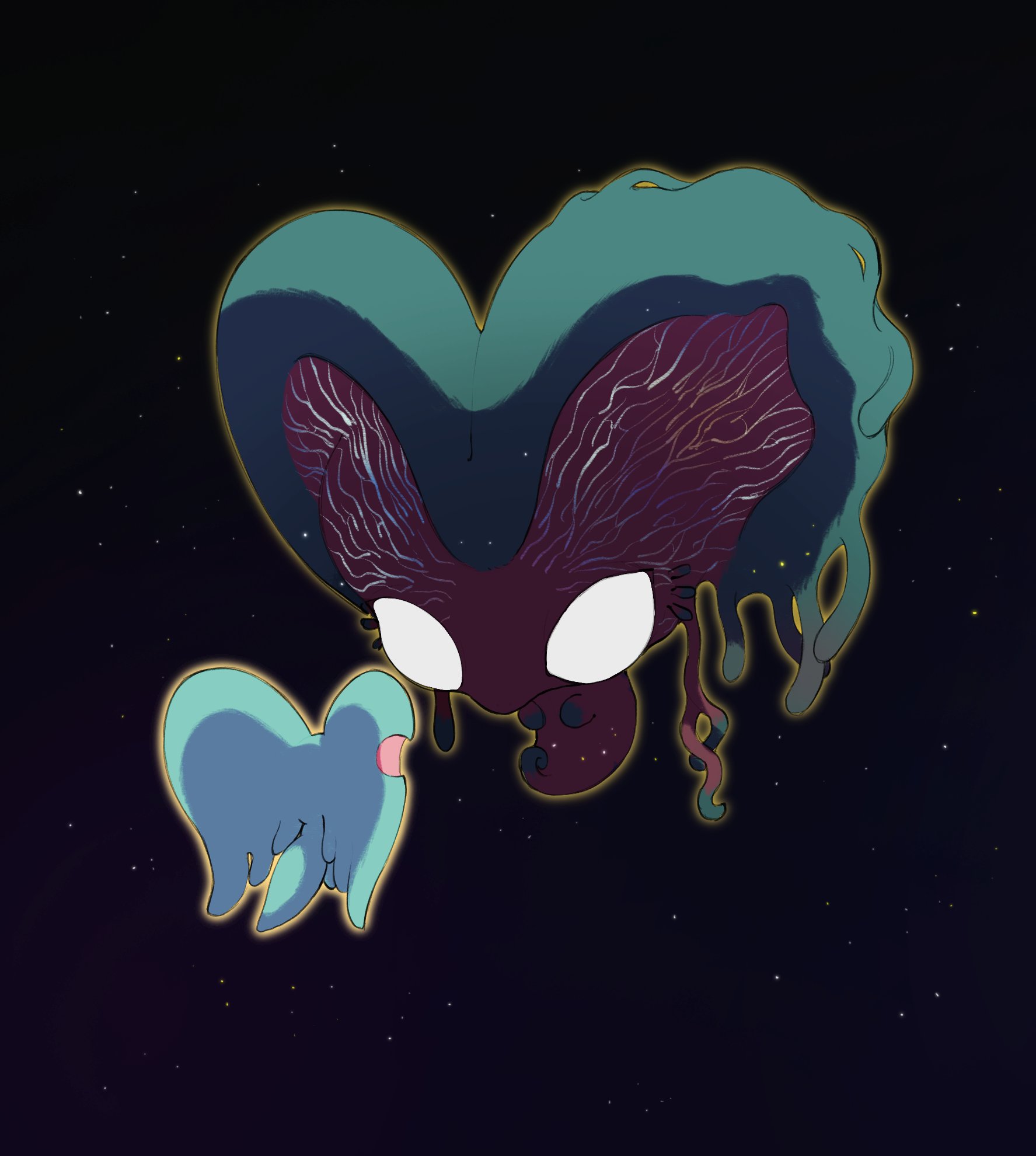 animal_ears blue_fur colored_skin creature elfilin fecto_forgo fecto_forgo_(larva) highres jiugong_chi kirby_(series) kirby_and_the_forgotten_land looking_at_another mouse_ears nintendo no_humans no_pupils notched_ear pink_skin tail