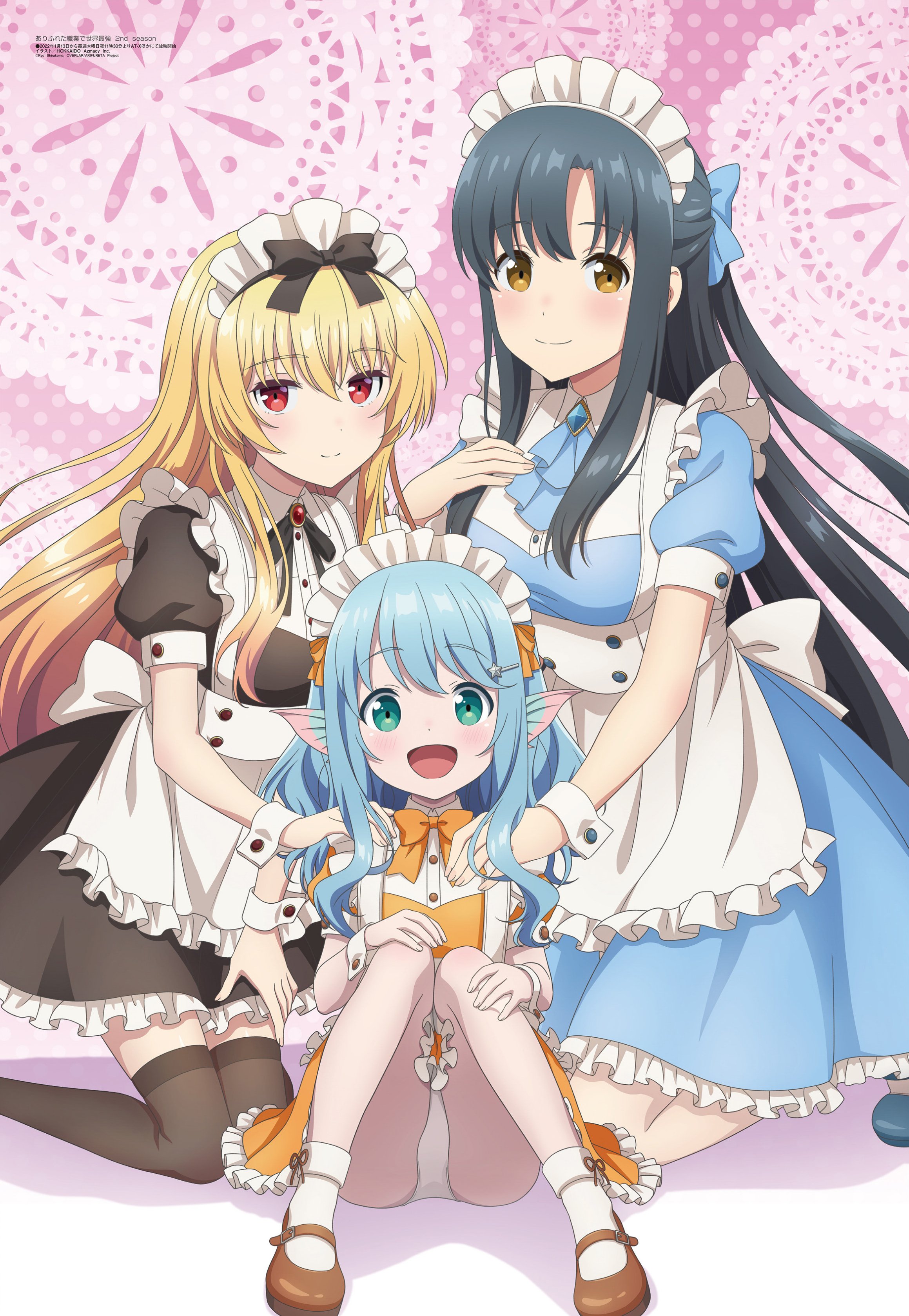 10s 1girl 3girls :o absurdres arifureta_shokugyou_de_sekai_saikyou artist_request black_socks blazer blue_hair blue_jacket blush bow bowtie breasts brown_eyes brown_shoes collared_shirt convenient_leg drop_shadow from_above full_body grey_skirt half_updo hand_in_own_hair hand_up highres jacket kneehighs knees_up loafers long_hair long_sleeves looking_at_viewer maid medium_breasts miniskirt multiple_girls myu_(arifureta) panties parted_lips plaid_bow plaid_bowtie plaid_clothes plaid_neckwear pleated_skirt red_bow red_bowtie school_uniform shirasaki_kaori shirt shoes sidelocks simple_background sitting skirt socks solo tareme underwear white_background white_shirt wing_collar yue_(arifureta)