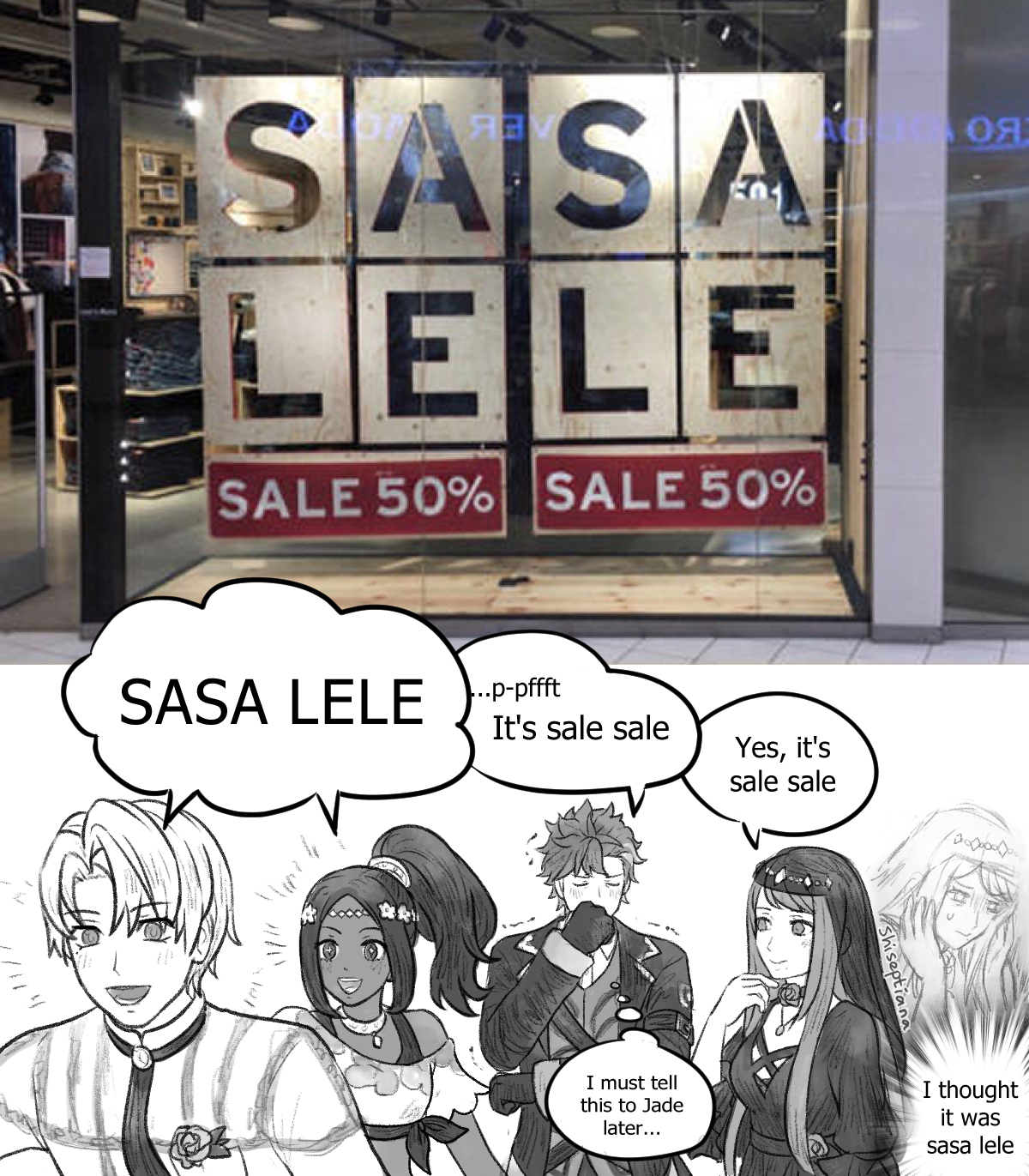 ... 2girls alfred_(fire_emblem) blush casual dark-skinned_female dark_skin diamant_(fire_emblem) don't_dead_open_inside_(meme) dress english_text fire_emblem fire_emblem_engage greyscale hair_ornament headdress highres jewelry long_hair meme monochrome multiple_girls nintendo official_alternate_costume open_mouth ponytail sasa_lele_(meme) shared_speech_bubble shiseptiana smile speech_bubble sweat sweatdrop thought_bubble timerra_(fire_emblem)