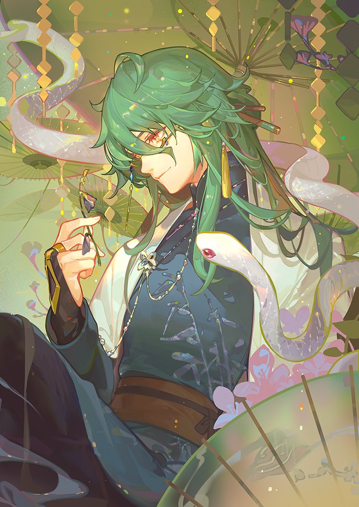 &{ID:8571805 CreatedAt:Sat May 20 17:47:02 -0500 2023 Score:4 Width:700 Height:987 MD5:4420c60eddabae0f3e6abd6192bc08a8 Directory:44/20 Image:4420c60eddabae0f3e6abd6192bc08a8.jpg Rating:general Source:https://twitter.com/KyoMonn/status/1659968663963971585 Change:1684622822 Owner:danbooru CreatorID:6498 ParentID:0 Sample:0 PreviewHeight:350 PreviewWidth:248 Tags:1boy ahoge baizhu_(genshin_impact) blue_shirt bridal_gauntlets brown_sash changpao changsheng_(genshin_impact) chinese_clothes closed_mouth coat coat_on_shoulders commentary crossed_legs earrings english_commentary eyelashes eyewear_strap flower genshin_impact glasses green_hair hair_between_eyes hair_bun hair_ornament hair_stick hand_up holding jewelry long_hair long_sleeves looking_away male_focus mandarin_collar oil-paper_umbrella pants plant sash semi-rimless_eyewear shirt sidelocks single_hair_bun sitting smile snake solo songjikyo tassel tassel_earrings umbrella under-rim_eyewear upper_body white_coat yellow_eyes Title: HasNotes:false HasComments:false FileURL:https://img2.gelbooru.com/images/44/20/4420c60eddabae0f3e6abd6192bc08a8.jpg PreviewURL:https://gelbooru.com/thumbnails/44/20/thumbnail_4420c60eddabae0f3e6abd6192bc08a8.jpg SampleURL: SampleHeight:0 SampleWidth:0 Status:active PostLocked:0 HasChildren:false IsVideo:false DisplayDate:20.05.2023 17:47}