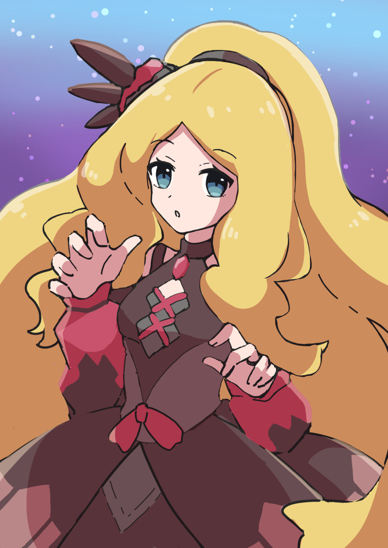 1girl black_dress blonde_hair blue_eyes caitlin_(fall_2021)_(pokemon) caitlin_(pokemon) dress hair_ornament haru_(haruxxe) high_ponytail long_hair looking_at_viewer nintendo parted_lips pokemon pokemon_masters_ex ponytail sketch solo upper_body very_long_hair