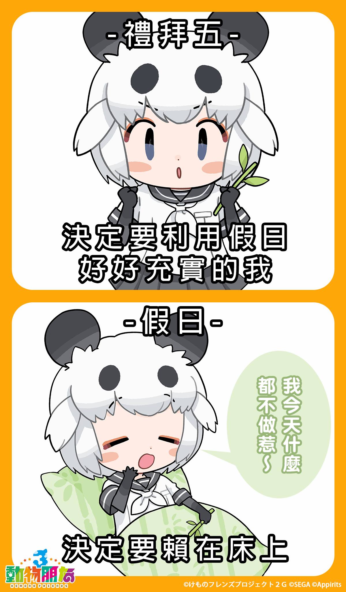 1girl animal_ears chinese_text giant_panda_(kemono_friends) grey_eyes grey_hair highres kemono_friends kemono_friends_3 kurokw short_hair solo