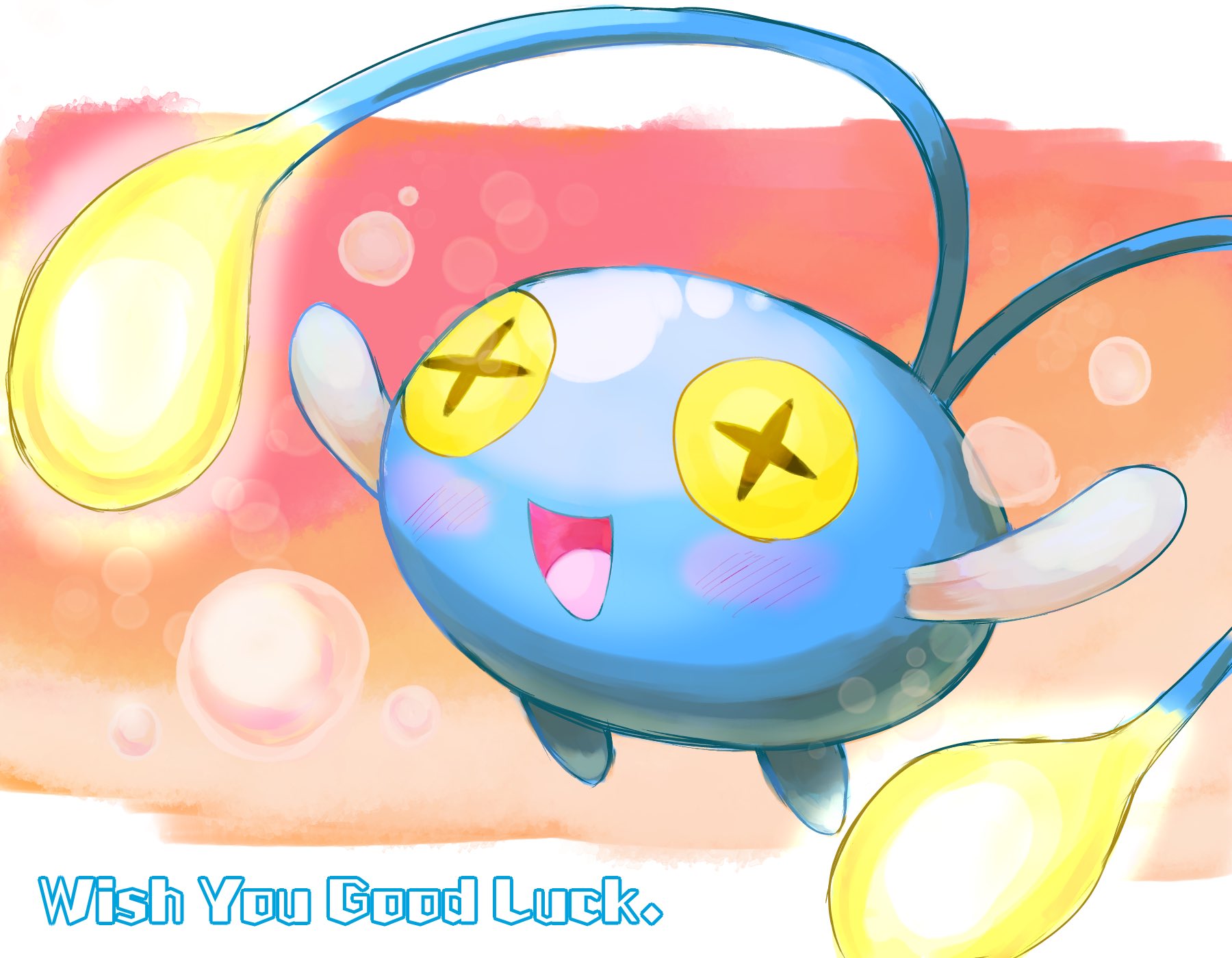 +_+ :d blush chinchou commentary_request dusk_poke27 gen_2_pokemon glowing highres nintendo no_humans open_mouth pokemon pokemon_(creature) smile solo tongue yellow_eyes