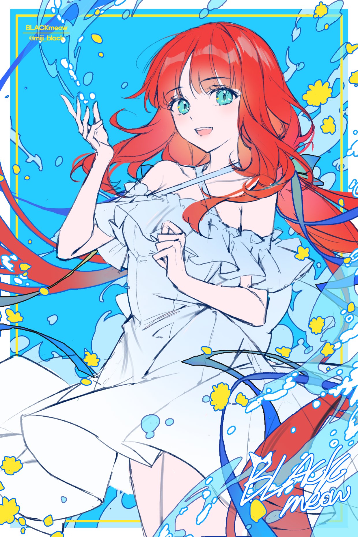 1girl aqua_eyes dress genshin_impact highres miji_black nilou_(genshin_impact) red_hair sketch solo white_dress