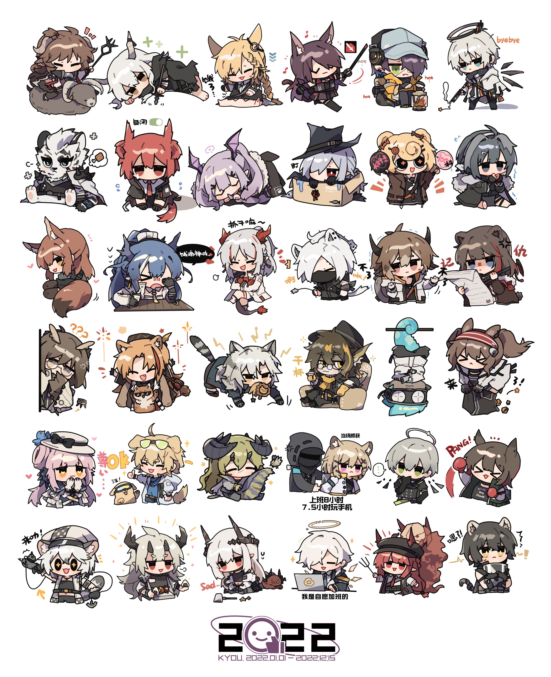 2022 6+boys 6+girls absurdres angelina_(arknights) arene_(arknights) arknights asbestos_(arknights) bison_(arknights) broca_(arknights) catapult_(arknights) ceylon_(arknights) chibi chinese_commentary chinese_text cliffheart_(arknights) doctor_(arknights) enforcer_(arknights) estelle_(arknights) ethan_(arknights) executor_(arknights) eyjafjalla_(arknights) fiammetta_(arknights) franka_(arknights) furry furry_male furry_with_furry furry_with_non-furry gladiia_(arknights) gummy_(arknights) highres indra_(arknights) interspecies kazemaru_(arknights) kroos_(arknights) kroos_the_keen_glint_(arknights) kyou_039 la_pluma_(arknights) lee_(arknights) ling_(arknights) manticore_(arknights) matoimaru_(arknights) melantha_(arknights) mountain_(arknights) mudrock_(arknights) multiple_boys multiple_girls nian_(arknights) shining_(arknights) shirayuki_(arknights) silence_(arknights) swire_(arknights) tequila_(arknights) translation_request utage_(arknights) vigna_(arknights) white_background zima_(arknights)