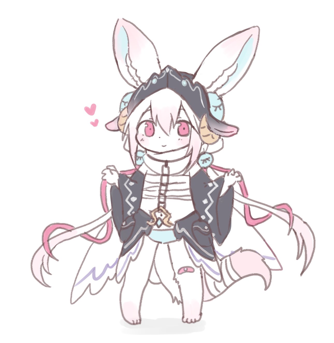 1girl animal animal_ear_fluff animal_ears bandages black_tunic blue_panties blush furry furry_female heart highres horns krande original panties pink_eyes sarashi tail tunic underwear wings