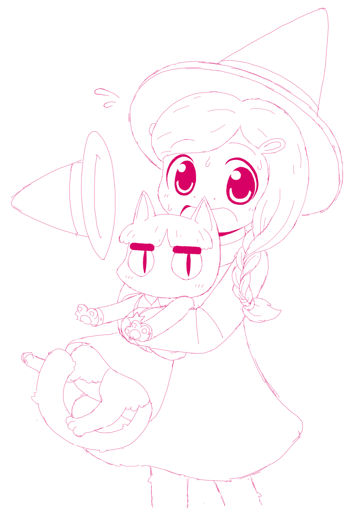 animal_ears betsy_(summer_camp_island) cat cat_ears cat_girl cat_tail commentary_request crossover hat horse horse_ears horse_girl nichijou open_mouth sakamoto_(nichijou) sketch slit_pupils summer_camp_island susie_mccallister tail witch witch_hat yajip