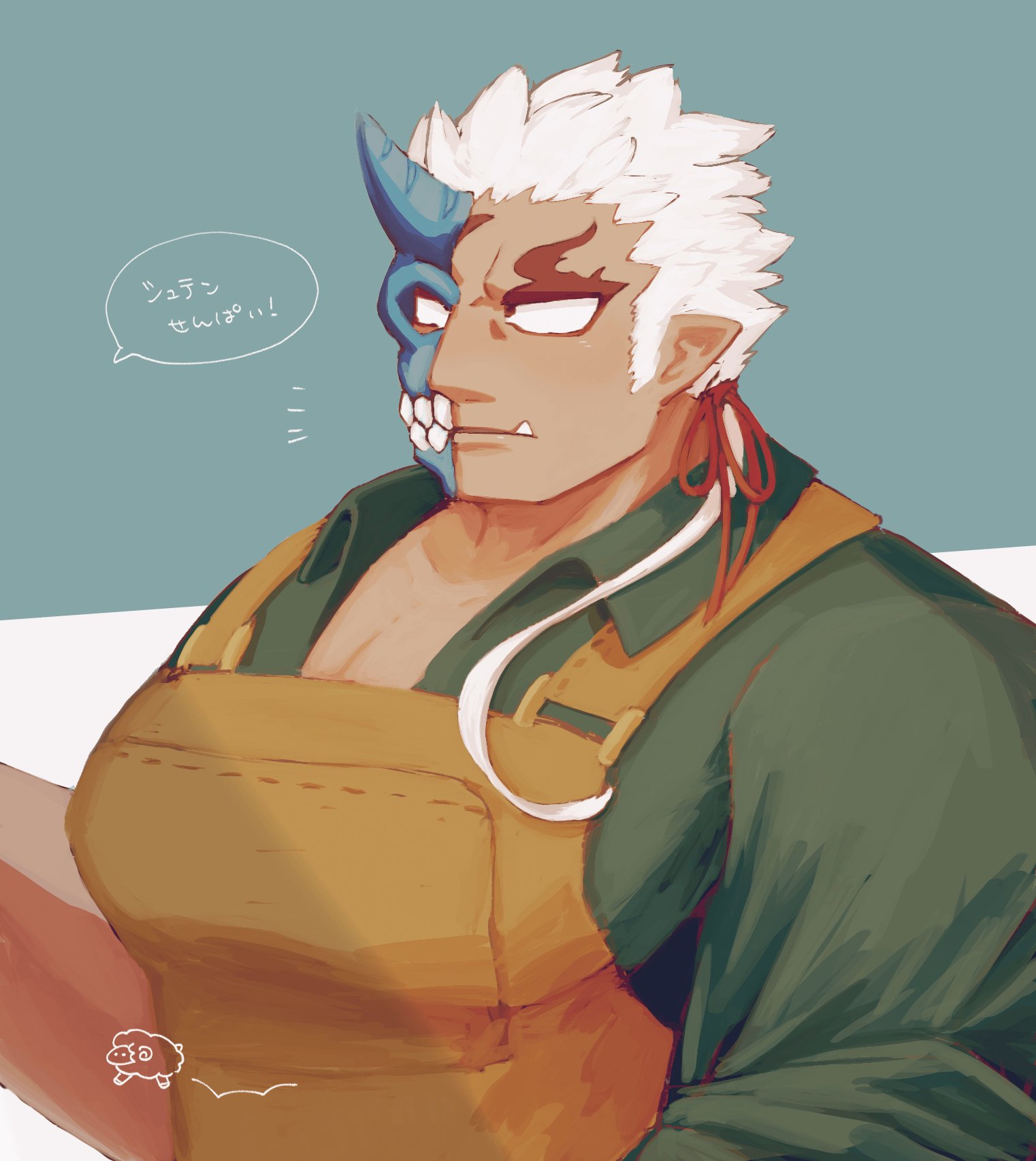 &{ID:8646400 CreatedAt:Fri Jun 09 10:46:25 -0500 2023 Score:0 Width:1522 Height:1705 MD5:b443944cd95b6610848d94a0a8c508db Directory:b4/43 Image:b443944cd95b6610848d94a0a8c508db.jpg Rating:general Source:https://twitter.com/sikarida_km/status/1551500098411958272 Change:1738900238 Owner:danbooru CreatorID:6498 ParentID:0 Sample:1 PreviewHeight:350 PreviewWidth:312 Tags:1boy apron bara brown_apron collared_shirt commentary_request dark-skinned_male dark_skin green_background green_shirt half_mask highres horned_mask large_pectorals long_hair long_sideburns low_ponytail male_focus mask muscular muscular_male no_pupils notice_lines oni_mask pectorals ponytail red_ribbon ribbon shirt shuten_douji_(housamo) sideburns sikarida_km solo tokyo_houkago_summoners translated tusks two-tone_background upper_body white_hair Title: HasNotes:true HasComments:false FileURL:https://img2.gelbooru.com/images/b4/43/b443944cd95b6610848d94a0a8c508db.jpg PreviewURL:https://gelbooru.com/thumbnails/b4/43/thumbnail_b443944cd95b6610848d94a0a8c508db.jpg SampleURL:https://img2.gelbooru.com/samples/b4/43/sample_b443944cd95b6610848d94a0a8c508db.jpg SampleHeight:952 SampleWidth:850 Status:active PostLocked:0 HasChildren:false IsVideo:false DisplayDate:09.06.2023 10:46}
