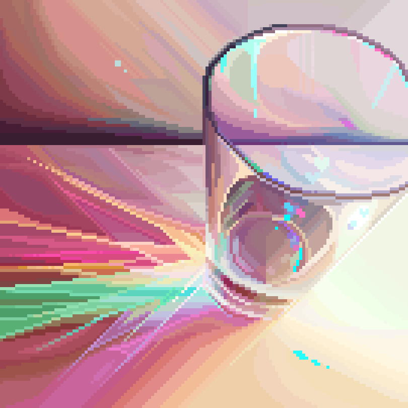 art_study caustics commentary cup drinking_glass english_commentary from_above glass jubilee_(8pxl) light no_humans original photo-referenced pixel_art rainbow_gradient shadow sidelighting still_life tagme water