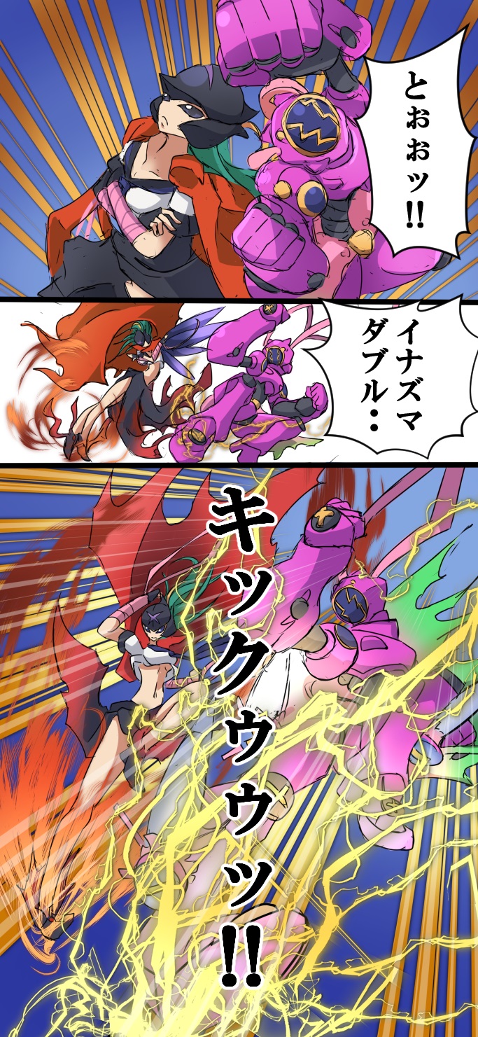 amphimon android armor bancholilimon banchou delinquent digimon digimon_(creature) diving_suit fairy flower full_armor gynoid highres inazuma_kick kicking mecha_girl monster_girl parody petals plant plant_girl robot_girl top_wo_nerae! top_wo_nerae!_(series)