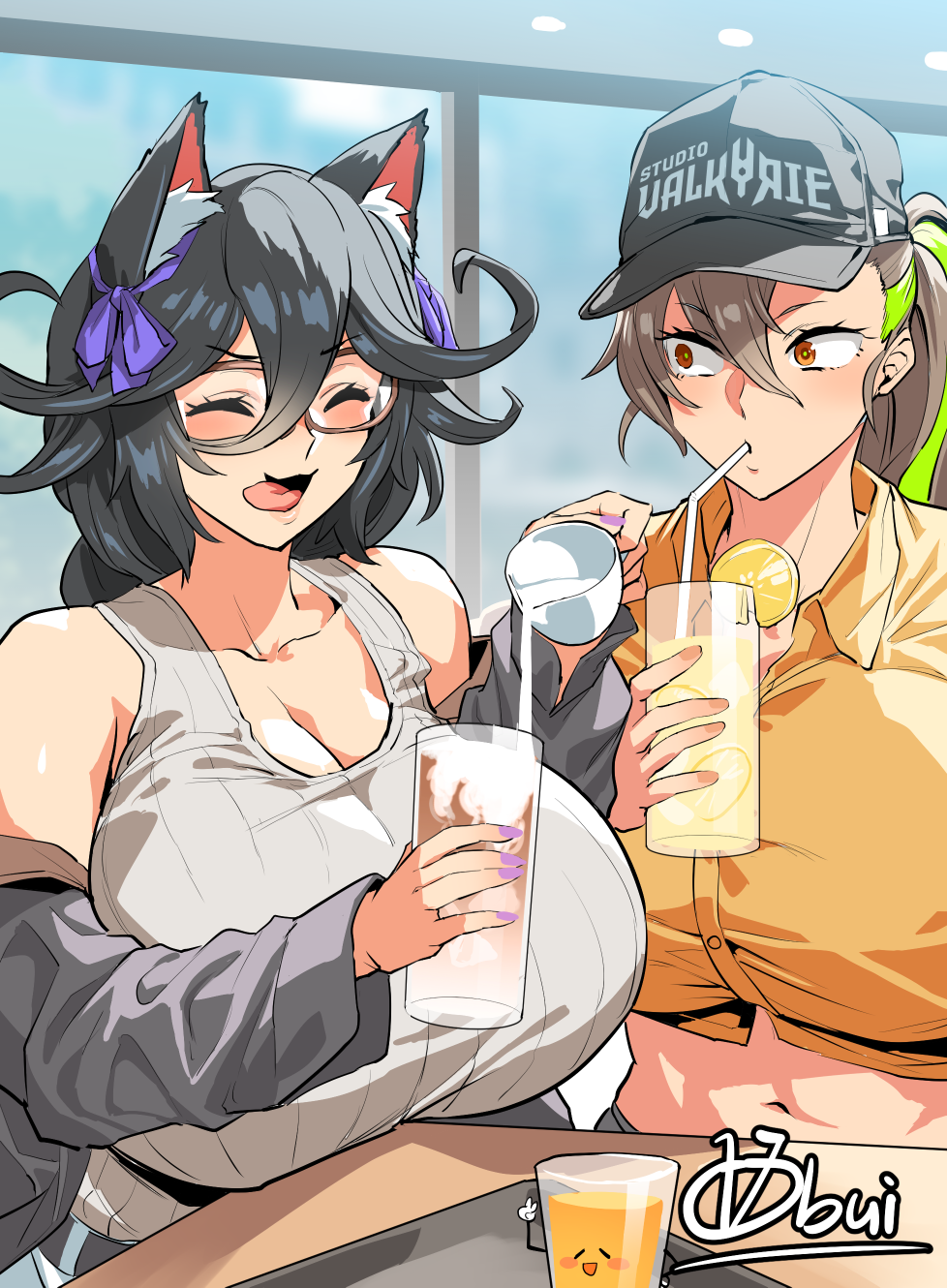 &{ID:8674533 CreatedAt:Sat Jun 17 02:31:19 -0500 2023 Score:49 Width:978 Height:1330 MD5:1a2f39d5d8def624eb86fdbbd963f9b3 Directory:1a/2f Image:1a2f39d5d8def624eb86fdbbd963f9b3.png Rating:general Source:https://cafeptthumb-phinf.pstatic.net/MjAyMzA2MTRfMzEg/MDAxNjg2NzIyMTE4NzQ2.a5S-I5gC8YGH2hxiBhdWGkpIK9ajzXojVKQNzyqKhJsg.PcCNSFkIHPgGy_YM7Qg6Ndyydh9DEsE95MpW1IB9xq0g.PNG/コラボカフェ記念絵.png?type=w1600 Change:1687251106 Owner:danbooru CreatorID:6498 ParentID:0 Sample:0 PreviewHeight:350 PreviewWidth:257 Tags:2girls animal_ears breasts cat_ears cat_girl clover_ace cup drink glasses highres huge_breasts large_breasts last_origin looking_at_another milk multicolored_hair multiple_girls navel obui orange_hair poi_(last_origin) ponytail smile tongue tongue_out two-tone_hair Title: HasNotes:false HasComments:false FileURL:https://img2.gelbooru.com/images/1a/2f/1a2f39d5d8def624eb86fdbbd963f9b3.png PreviewURL:https://gelbooru.com/thumbnails/1a/2f/thumbnail_1a2f39d5d8def624eb86fdbbd963f9b3.jpg SampleURL: SampleHeight:0 SampleWidth:0 Status:active PostLocked:0 HasChildren:false IsVideo:false DisplayDate:17.06.2023 02:31}