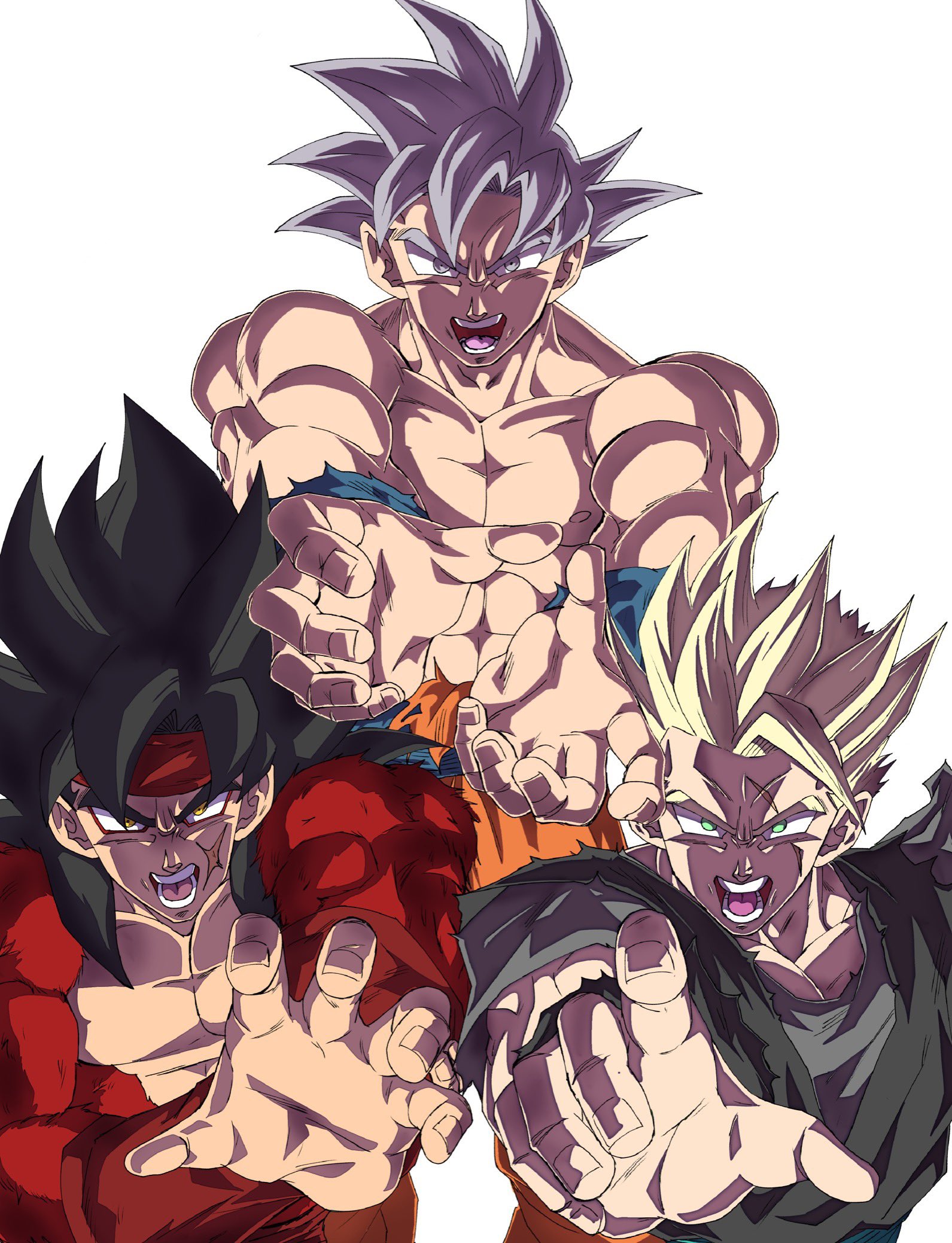 bardock father-son_kamehameha father_and_child father_and_son grandfather_and_grandson highres kamehameha_(dragon_ball) muscular muscular_male parent_and_child red_fur screaming son_gohan son_gohan_(future) son_goku super_dragon_ball_heroes super_saiyan super_saiyan_2 super_saiyan_4 tagme ultra_instinct