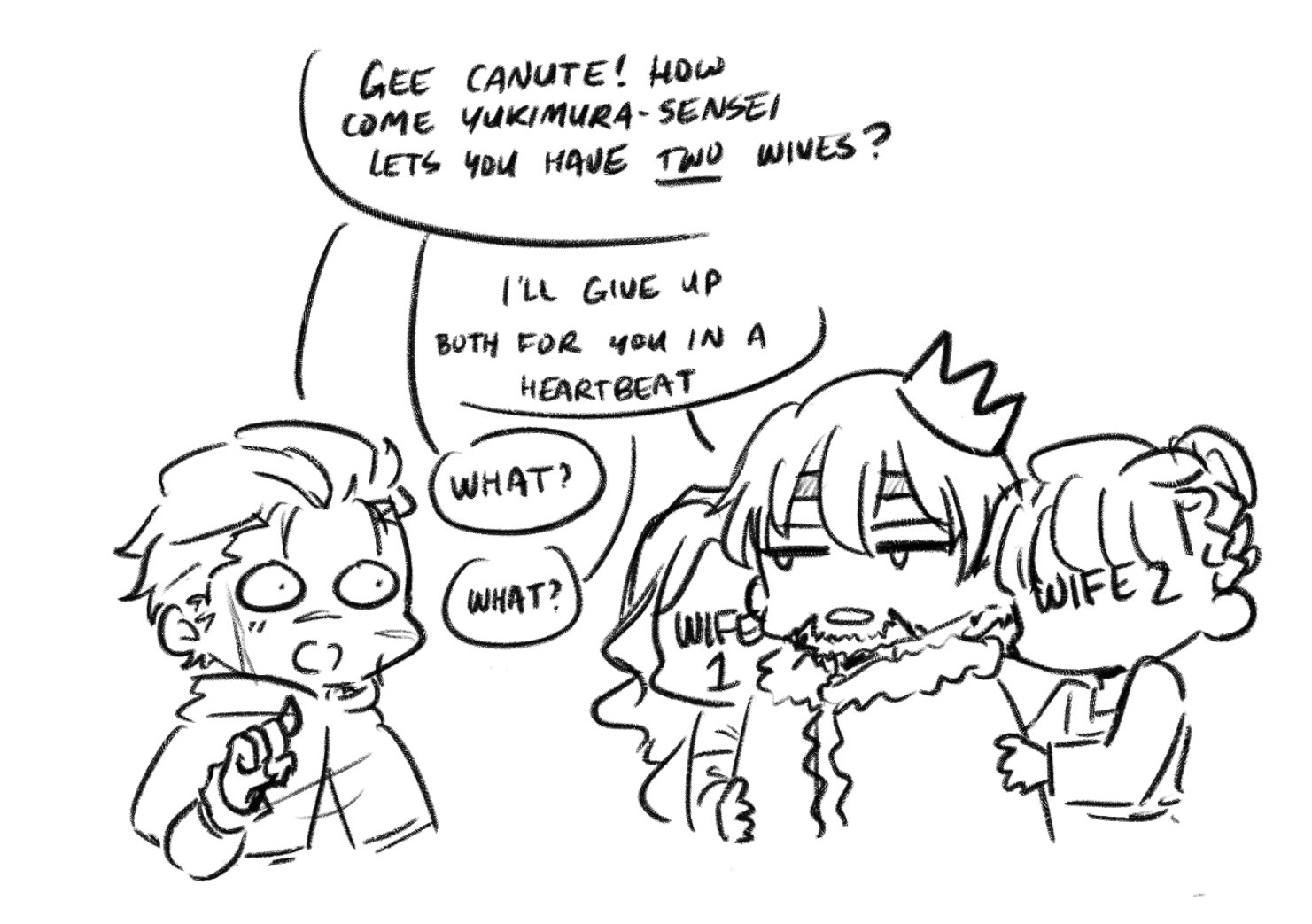 2boys 2girls ? beard canute cape character_name chibi crown doodle english_text faceless faceless_female facial_hair facial_scar fur_trim headband husband_and_wives king looking_at_another monochrome multiple_boys multiple_girls o_o open_mouth polygamy scar scar_on_cheek scar_on_face short_hair simple_background sopa_gamja speech_bubble talking thorfinn viking vinland_saga yaoi
