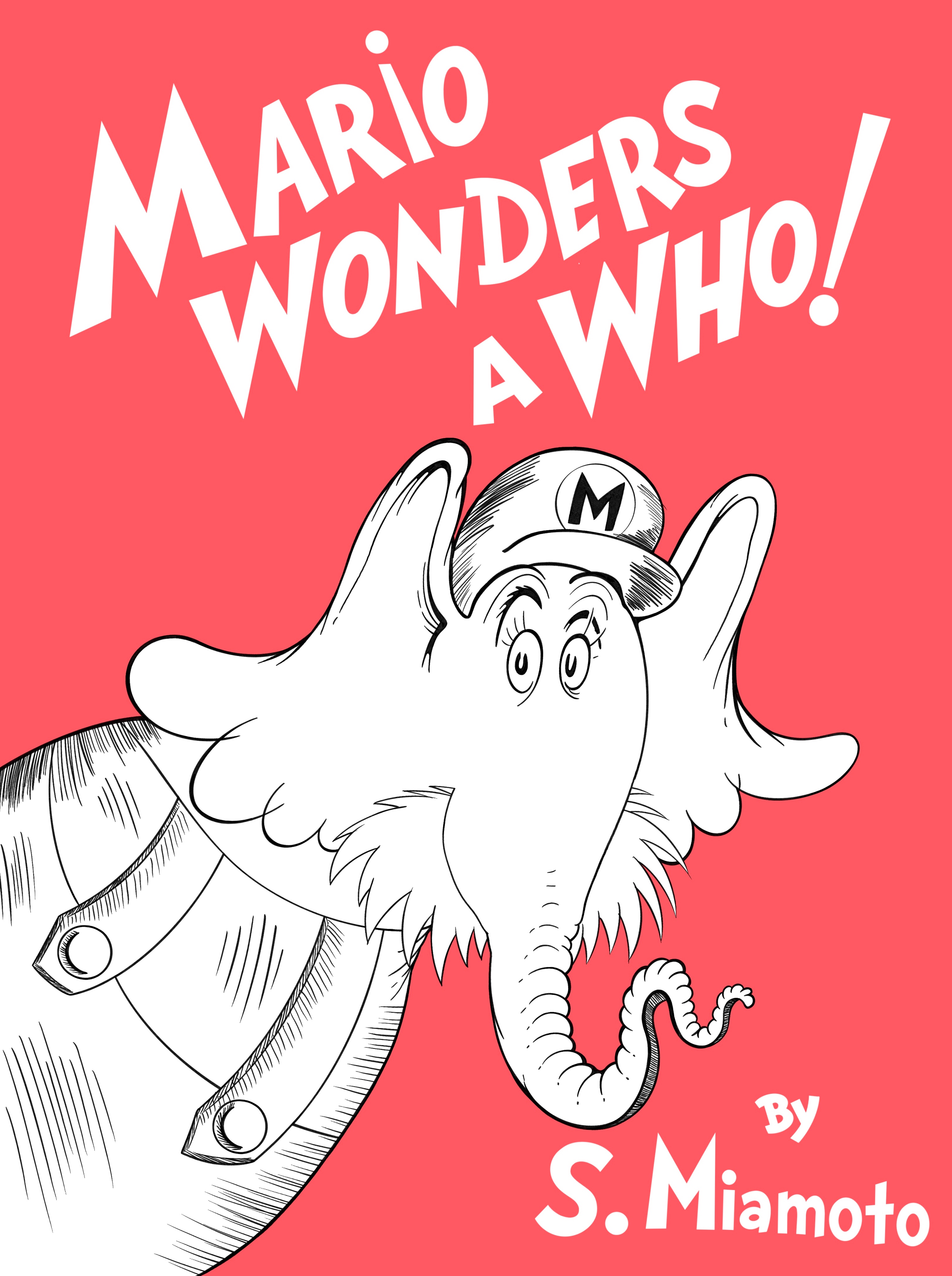 1boy absurdres animal animal_ears animalization character_name crossover dr._seuss_(style) elephant elephant_ears elephant_mario facial_hair gummiipop_art hat highres horton_hears_a_who! horton_the_elephant looking_at_viewer mario mario_(series) mustache nintendo overalls parody red_background super_mario_bros._wonder