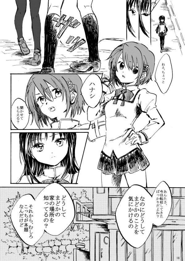 2girls akemi_homura bag brick_road check_commentary closed_mouth comic commentary commentary_request eye_focus eyelashes grass greyscale hair_ornament hairclip half-closed_eyes hand_on_own_hip holding holding_bag house kneehighs leggings light_frown long_hair lower_body mahou_shoujo_madoka_magica miki_sayaka mitakihara_school_uniform monochrome multiple_girls no+bi= open_mouth outdoors school_bag school_uniform short_hair sidewalk socks speech_bubble straight_hair teeth translation_request tree upper_body upper_teeth_only v-shaped_eyebrows walking