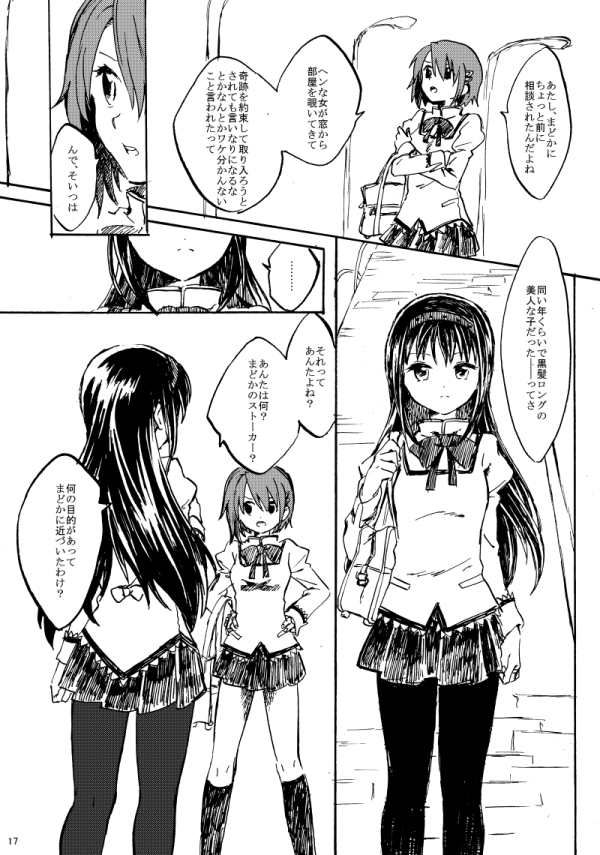 ... 2girls akemi_homura bag brick_road check_commentary close-up closed_mouth comic commentary commentary_request crossed_arms eye_focus from_behind greyscale hair_ornament hairband hairclip hands_on_own_hips holding holding_bag kneehighs lamppost leggings light_frown long_hair mahou_shoujo_madoka_magica miki_sayaka mitakihara_school_uniform monochrome mouth_focus multiple_girls no+bi= open_mouth outdoors school_bag school_uniform short_hair sidewalk socks speech_bubble straight_hair teeth translation_request upper_teeth_only v-shaped_eyebrows