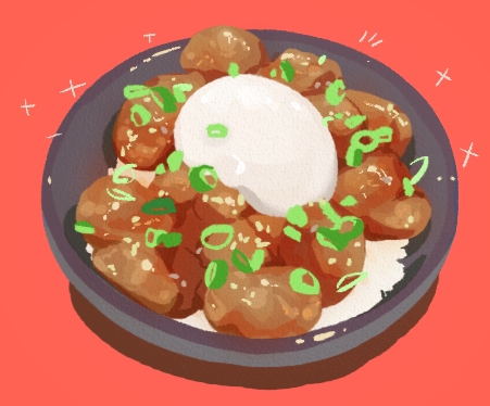 bowl chicken_(food) food food_focus lowres meat no_humans original red_background rice simple_background still_life torianco3