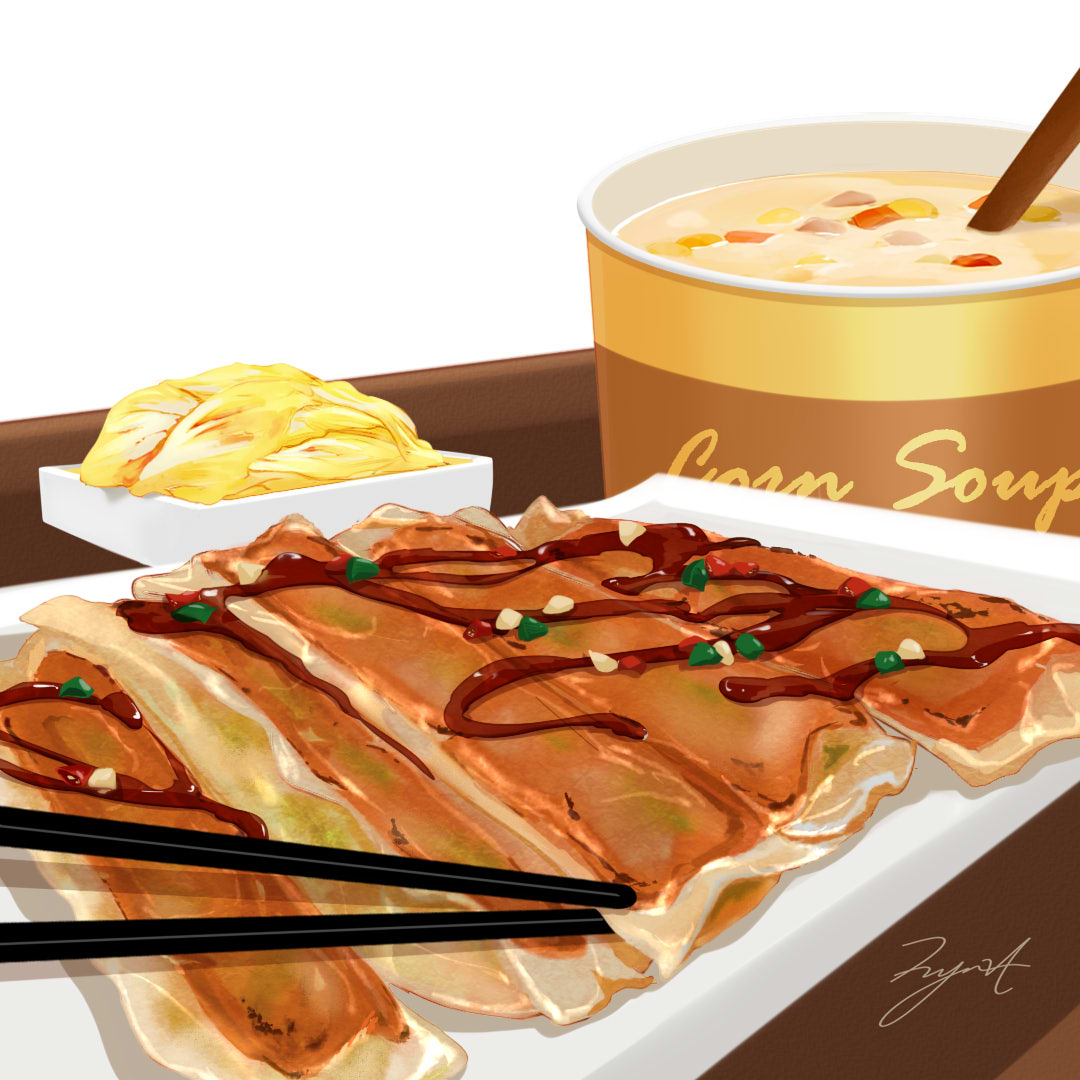 chopsticks cup dumpling food food_focus jiaozi no_humans original plate signature soup still_life user_wkax8822 white_background