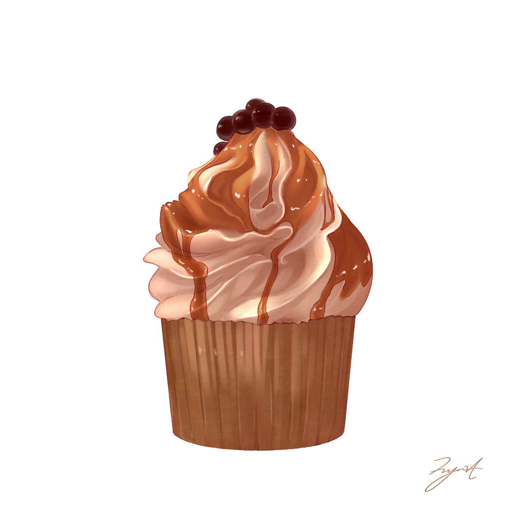cupcake dessert food food_focus icing no_humans original signature simple_background still_life user_wkax8822 white_background