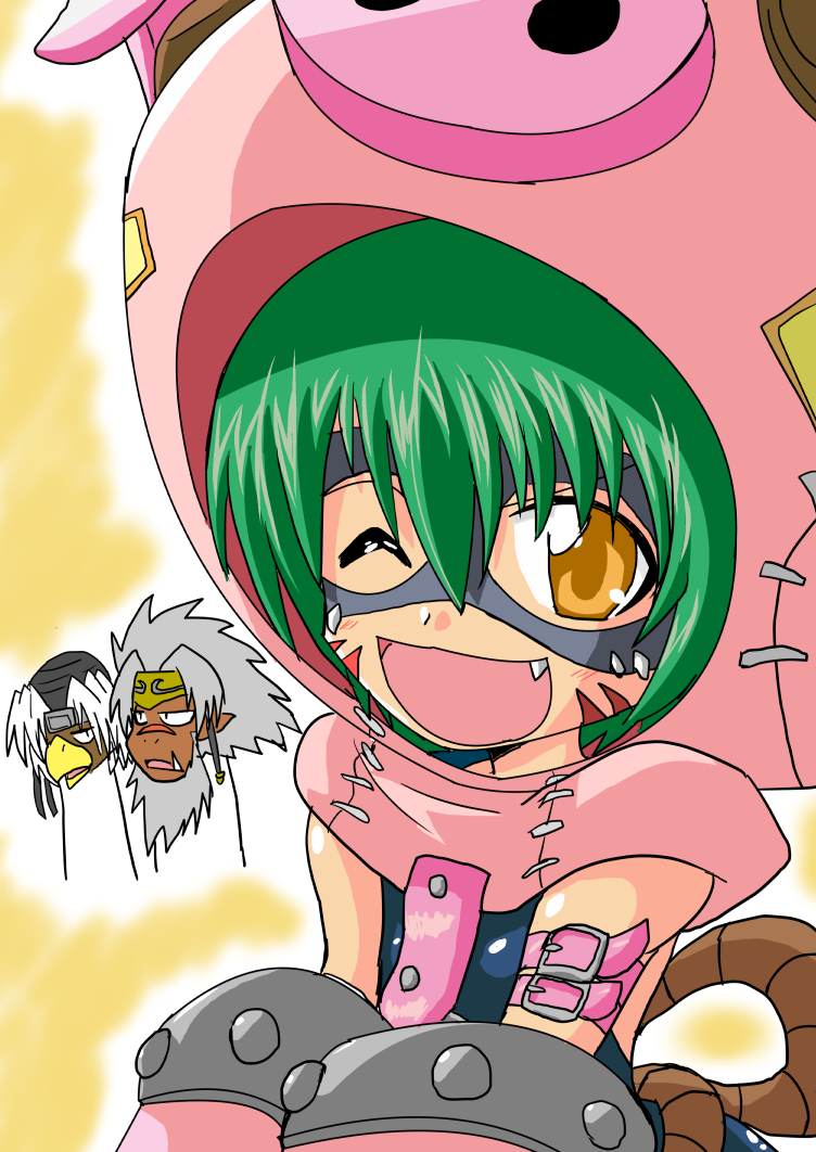 1girl 2boys belt cho-hakkaimon costume digimon digimon_(creature) gokuwmon monkey multiple_boys pig sagomon