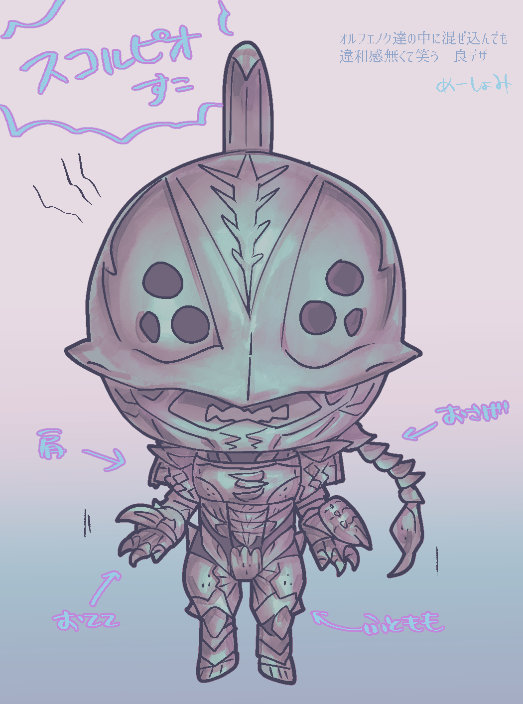 armor character_name chibi claws extra_eyes full_body highres horns kamen_rider kamen_rider_kabuto_(series) me_syomi monster no_humans open_mouth scorpio_worm tokusatsu