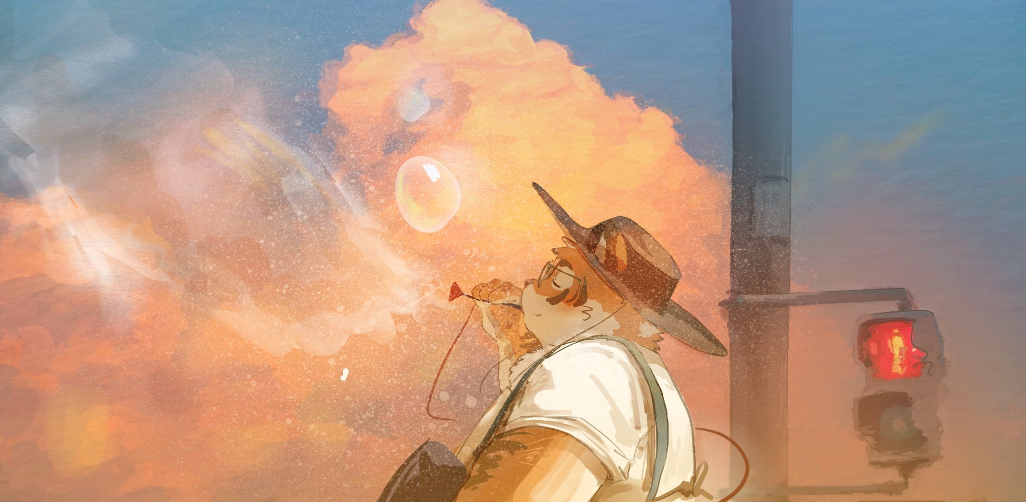 1boy bad_link bad_twitter_link blowing_bubbles closed_eyes cloud furry furry_male hat highres original solo suspenders tiger xinnainai