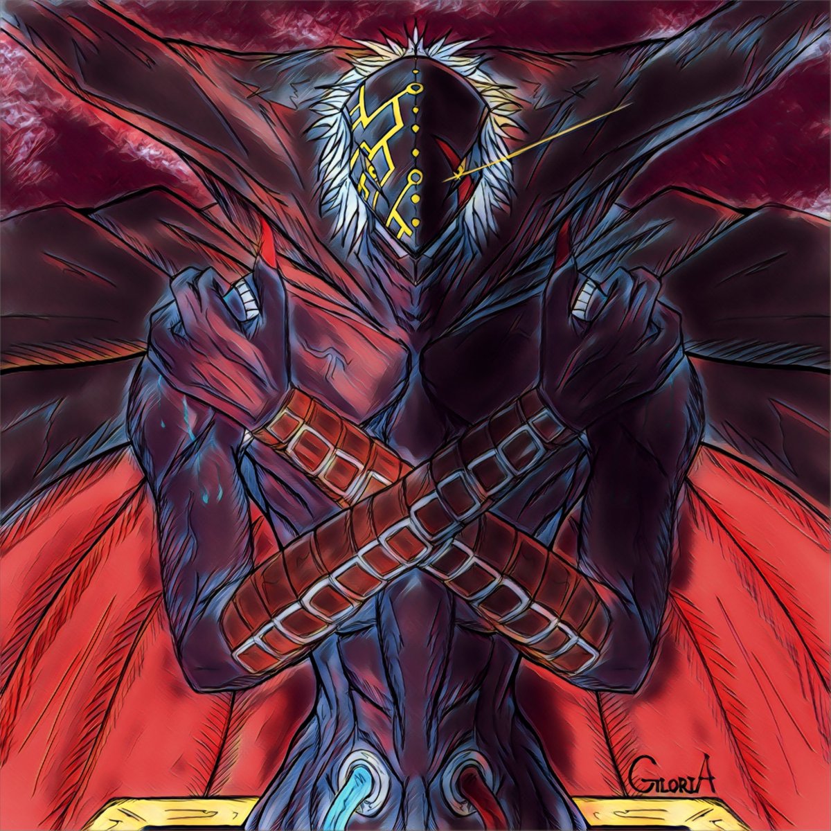 1boy apocalymon cape digimon digimon_(creature) highres male_focus mask solo yellow_eyes