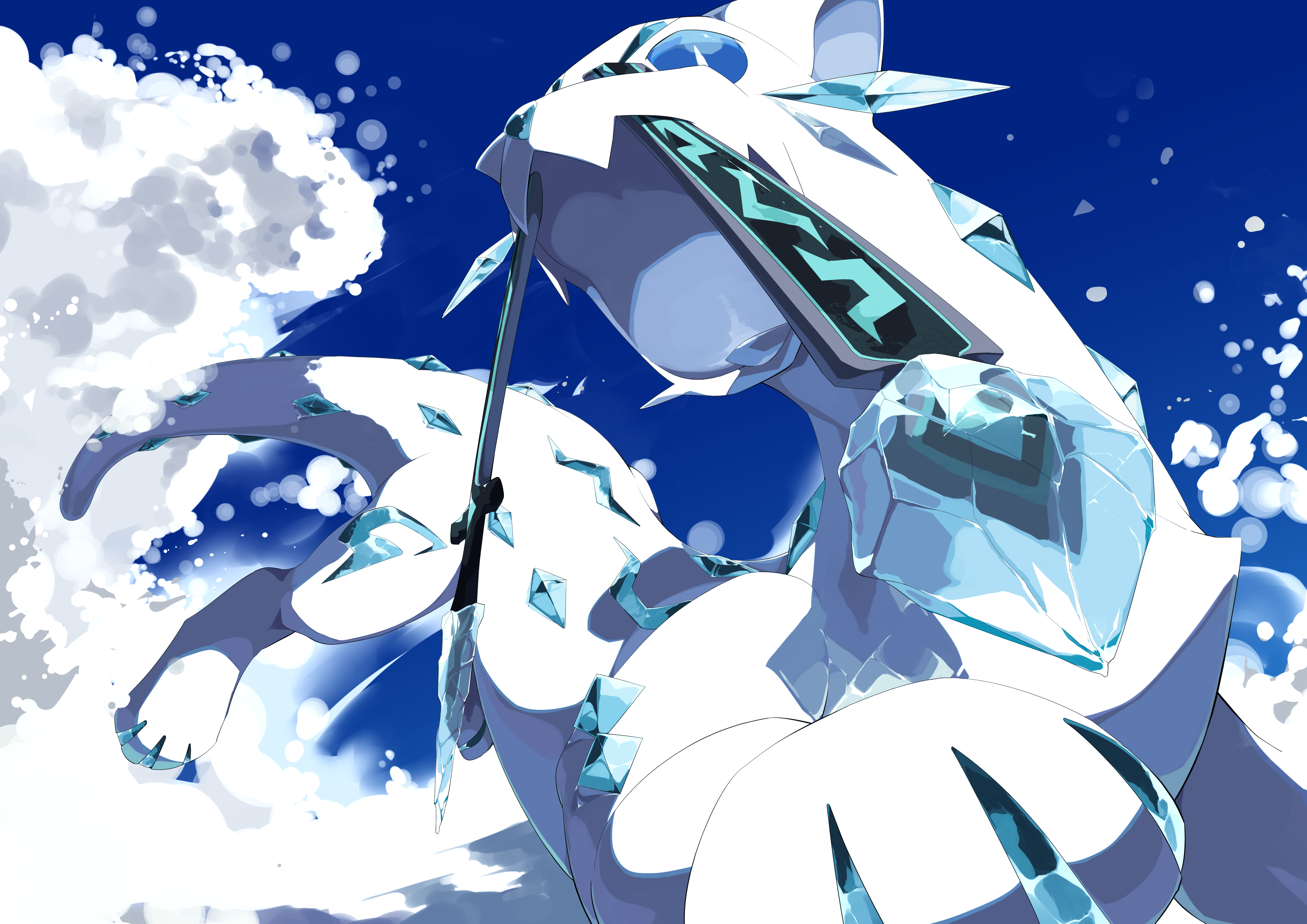 absurdres blue_eyes bright_pupils chien-pao commentary_request day highres kura_(shironagasu02) nintendo no_humans outdoors pokemon pokemon_(creature) running sky snow solo tusks white_pupils