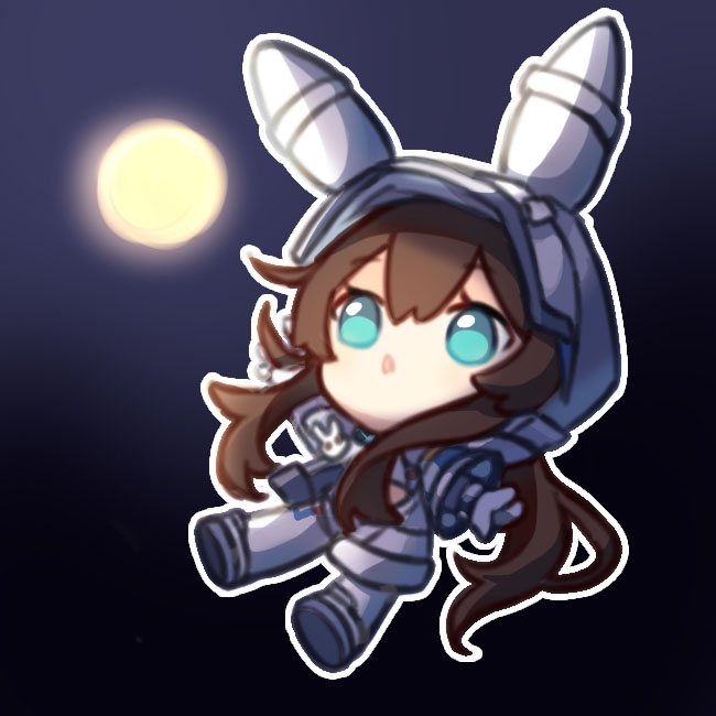 1girl amiya_(arknights) amiya_(guard)_(arknights) amiya_(guard)_(touch_the_stars)_(arknights) animal_ears animal_hood arknights blush brown_hair chibi commentary_request fake_animal_ears full_body full_moon ghost794 gloves hair_between_eyes hood hood_up hooded_jacket jacket long_hair long_sleeves moon outstretched_arms pants rabbit_ears rabbit_hood shoe_soles solo very_long_hair white_footwear white_gloves white_jacket white_pants wide_sleeves