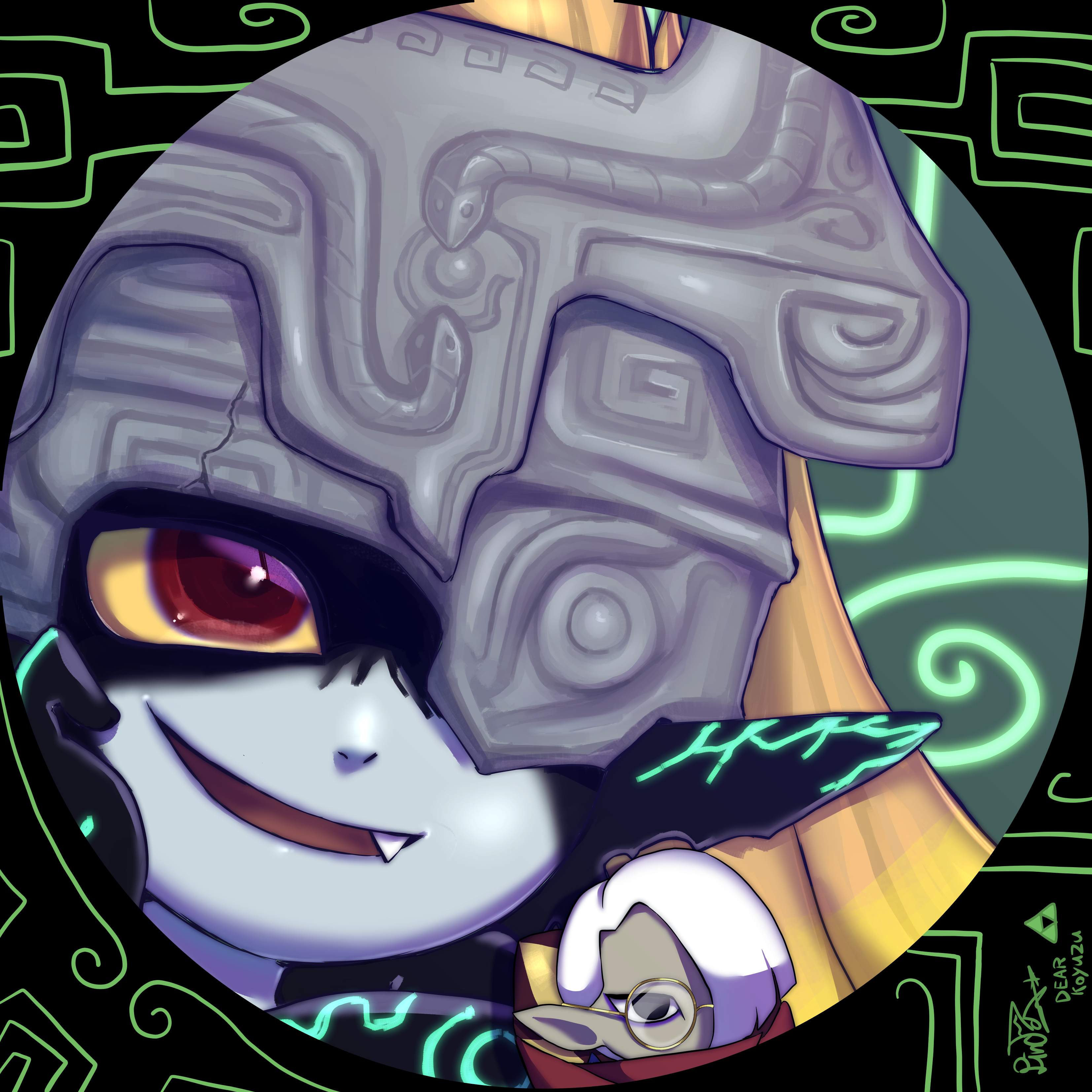 1boy 1girl absurdres artist_name bespectacled black_eyes black_skin cape chibi chibi_inset colored_sclera colored_skin covered_mouth demon_girl eyeliner fang female_focus ghirahim glasses grey_headwear grey_skin hair_over_one_eye happy helmet high_collar highres midna multicolored_skin nintendo one_eye_covered open_mouth orange_hair pointy_ears portrait purple_eyeliner red_cape red_eyes round_eyewear round_border s_(esumi_kihomaru) short_hair signature smile solo_focus the_legend_of_zelda the_legend_of_zelda:_skyward_sword the_legend_of_zelda:_twilight_princess two-tone_skin white_hair white_skin yellow-framed_eyewear yellow_sclera