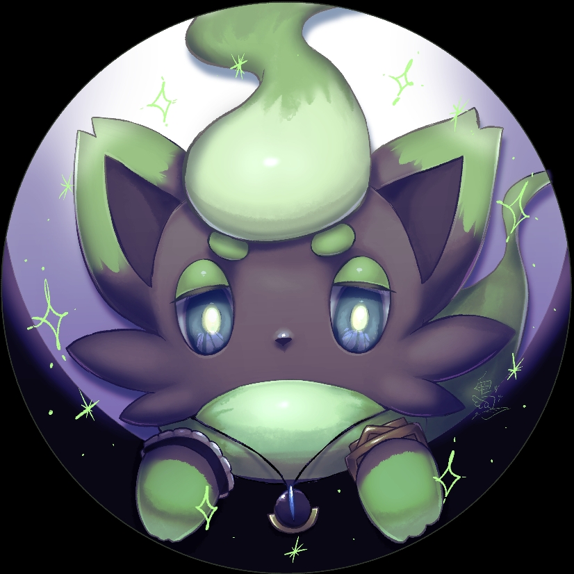 alternate_color alternate_shiny_pokemon animal_focus animalization blue_eyes bracelet gen_5_pokemon green_hair green_pupils half-closed_eyes jewelry looking_at_viewer n_(pokemon) neck_fur necklace nintendo no_humans pokemon pokemon_(creature) pokemon_black_and_white round_border s_(esumi_kihomaru) short_hair signature single_wrist_cuff solo sparkle straight-on wrist_cuffs zorua