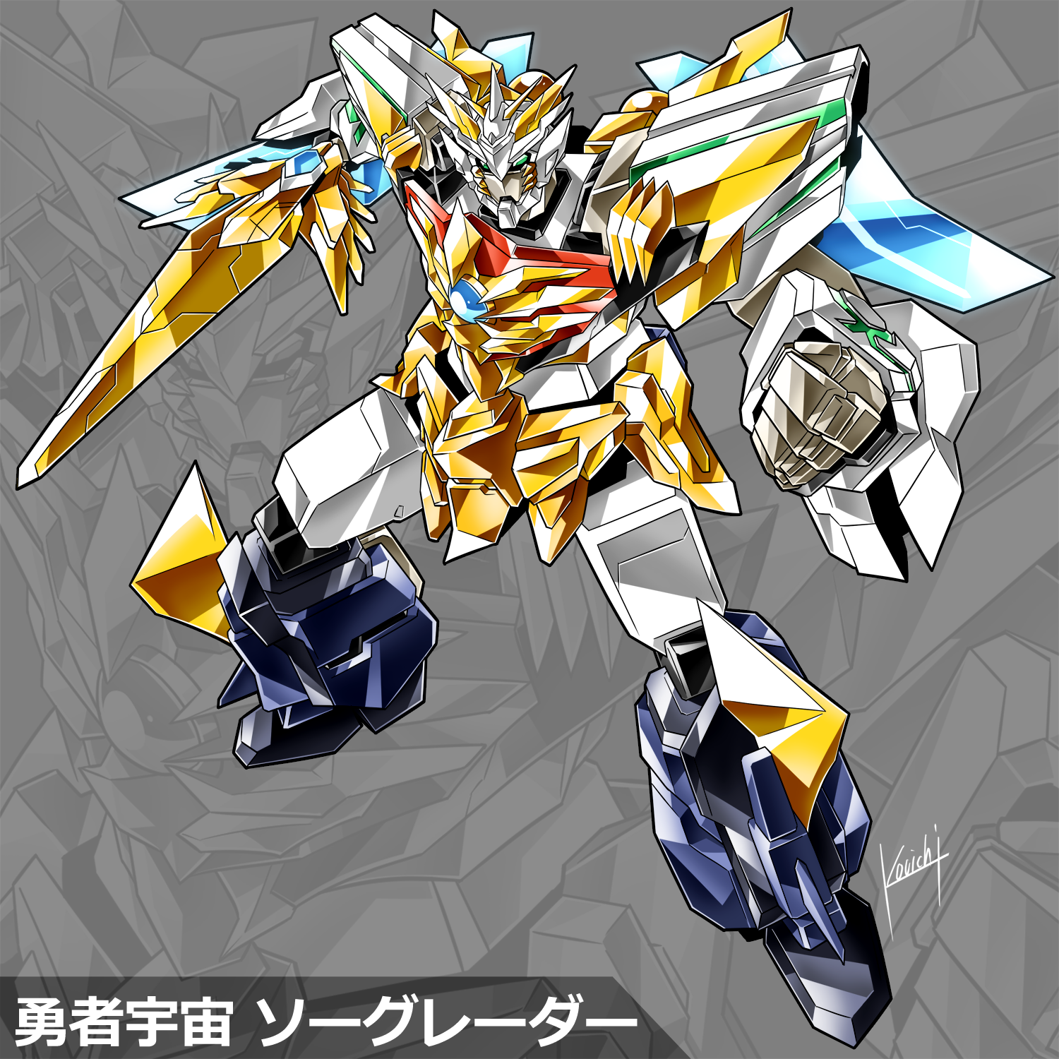 artist_name clenched_hand copyright_name green_eyes highres holding holding_sword holding_weapon kouichi_(kouichi-129) mecha no_humans robot science_fiction solo super_robot sword swordgrader v-fin weapon yuusha_series yuusha_uchuu_swordgrader