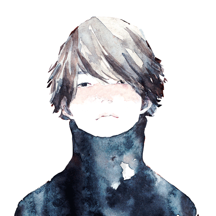 1boy black_eyes blush brown_hair canaco014 expressionless looking_at_viewer male_focus original painting_(medium) portrait short_hair solo swept_bangs traditional_media turtleneck watercolor_(medium)