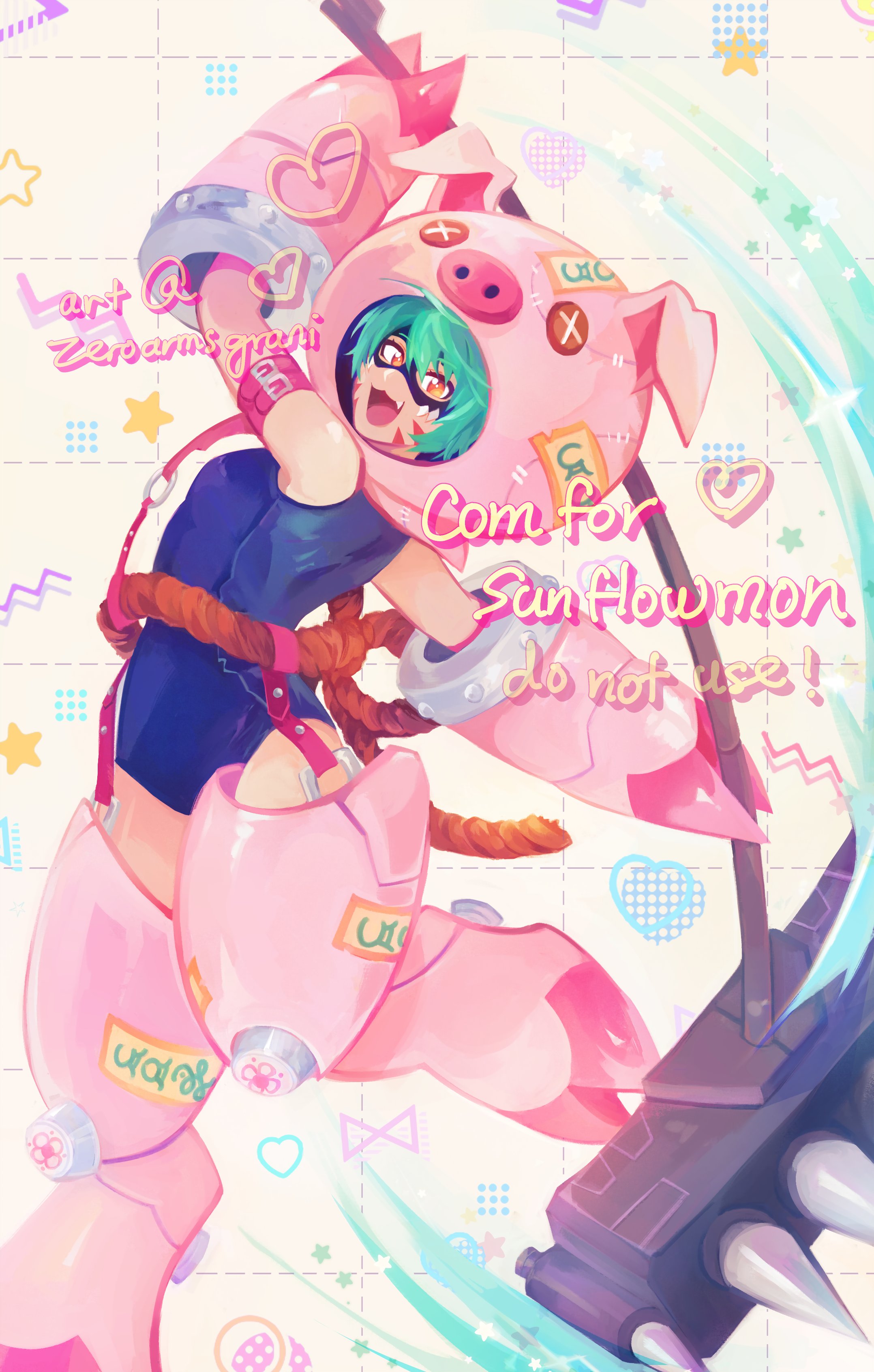 1girl absurdres animal_costume cho-hakkaimon digimon digimon_(creature) female_focus green_hair highres mask pig_costume solo swimsuit yellow_eyes