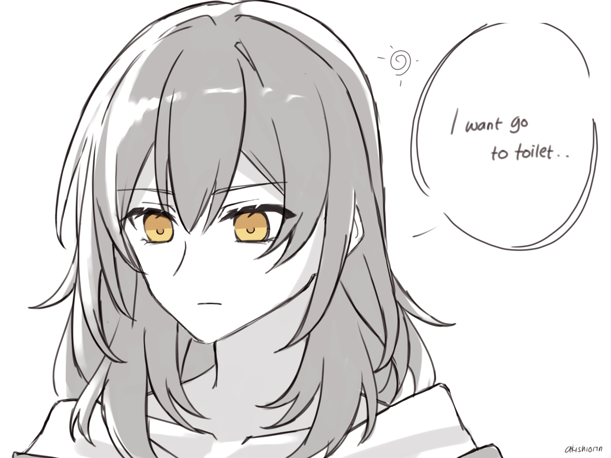 1girl akishiorin collarbone commentary_request english_text highres honkai:_star_rail honkai_(series) limited_palette long_hair portrait solo spot_color stelle_(honkai:_star_rail) trailblazer_(honkai:_star_rail) yellow_eyes