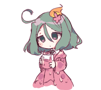 1girl adoration_(e.g.o) black_necktie blush_stickers collared_shirt commentary_request e.g.o_(project_moon) employee_(project_moon) green_eyes green_hair hair_between_eyes hair_ornament holding holding_pitcher hoshizuki_sakusa jacket lobotomy_corporation long_sleeves lowres medium_hair necktie nugget_(project_moon) open_clothes open_jacket pink_jacket pink_vest pitcher_(container) project_moon shirt simple_background sketch solo upper_body vest white_background white_shirt