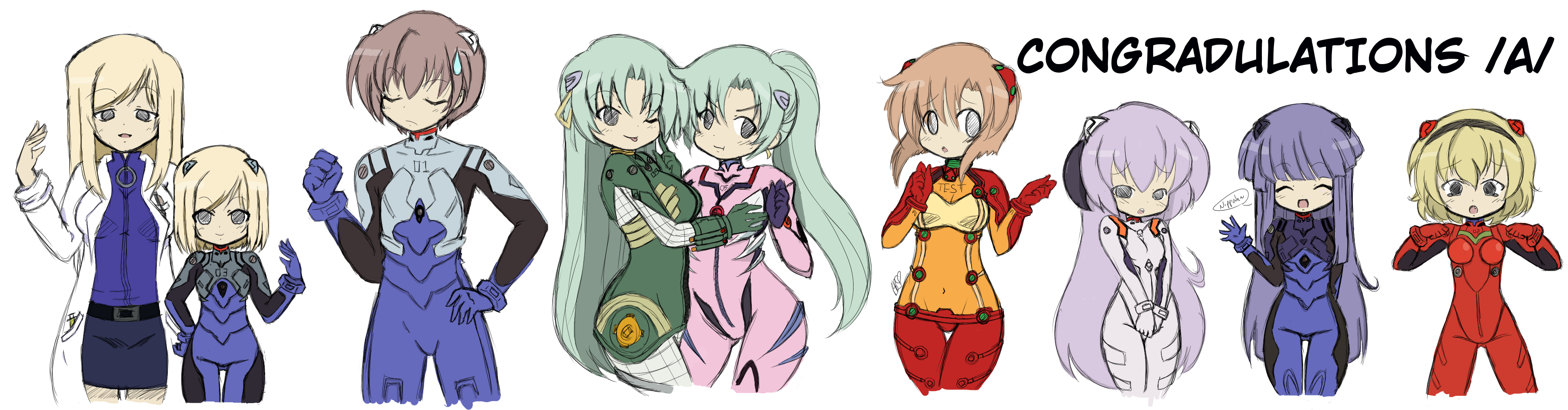 1boy 4chan 6+girls absurdres aged_down akagi_ritsuko_(cosplay) ayanami_rei ayanami_rei_(cosplay) chibi cosplay drawfag everyone fang furude_rika hanyuu highres higurashi_no_naku_koro_ni houjou_satoko ikari_shinji ikari_shinji_(cosplay) interface_headset_(evangelion) long_image maebara_keiichi makinami_mari_illustrious makinami_mari_illustrious_(cosplay) mecha_pilot_suit multiple_girls neon_genesis_evangelion non-web_source pantyhose plugsuit_(cosplay) plugsuit_(evangelion) rebuild_of_evangelion ryuuguu_rena siblings simple_background sisters smile sonozaki_mion sonozaki_shion souryuu_asuka_langley_(cosplay) standing takano_miyo test_plugsuit_(evangelion) time_paradox twins wide_image