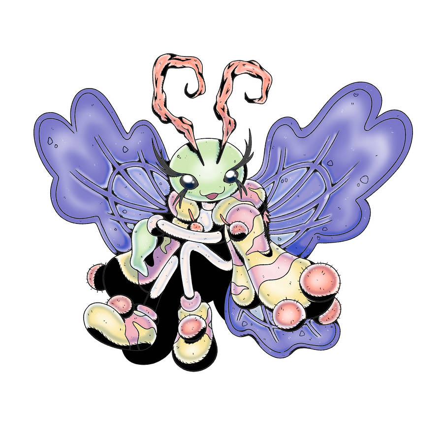 arthropod_girl butterfly_girl digimon digimon_(creature) looking_at_viewer original simple_background white_background