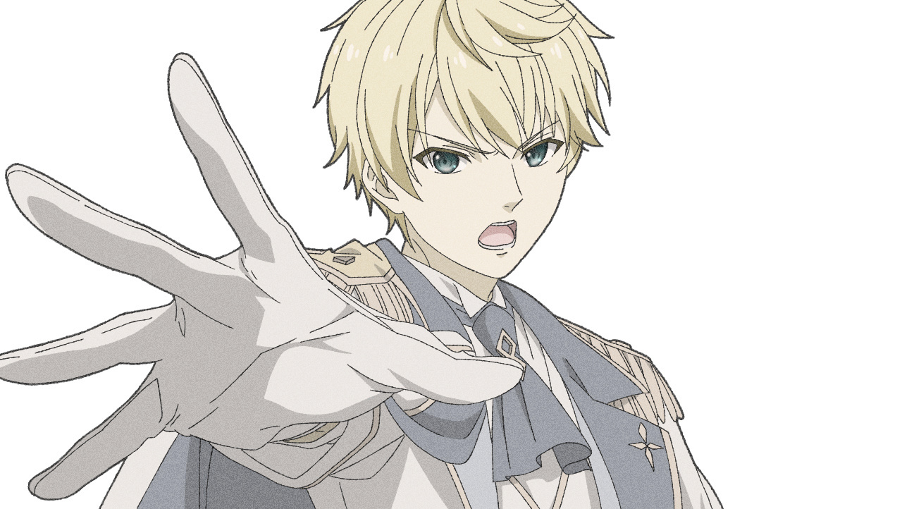 1boy algard_von_palettia blonde_hair blue_eyes epaulettes gloves male_focus open_mouth simple_background solo teeth tensei_oujo_to_tensai_reijou_no_mahou_kakumei watanabegenn white_background white_gloves