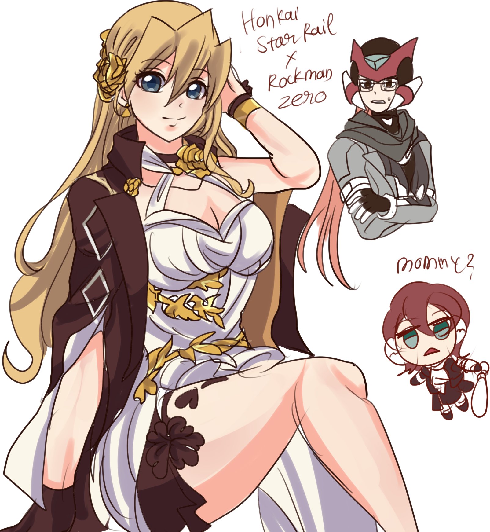 blonde_hair ciel_(mega_man) highres honkai:_star_rail honkai_(series) khongbautroi mega_man_(series) mega_man_zero_(series) zero_(mega_man)