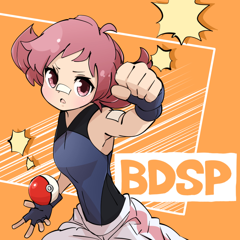 1girl bandaid fingerless_gloves gloves gram_(artist) maylene_(pokemon) nintendo pink_eyes pink_hair pokemon pokemon_dppt short_hair sleeveless